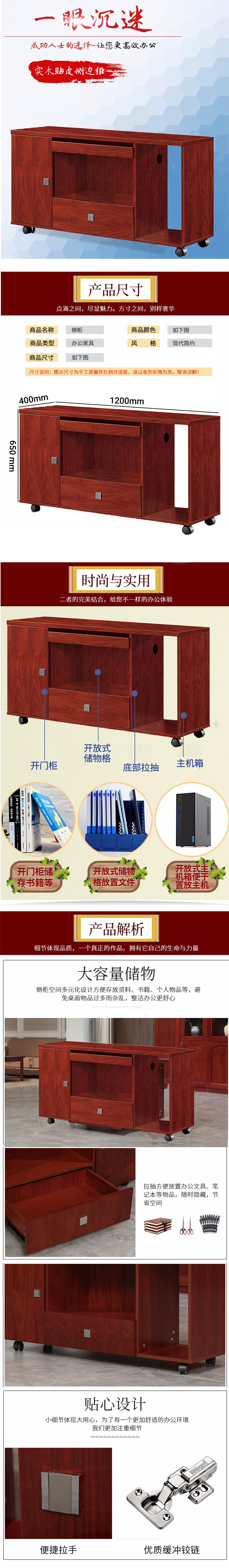 荣美盛 老板桌经理桌主管桌侧柜电脑台木质储物侧柜/个 1200*400*650