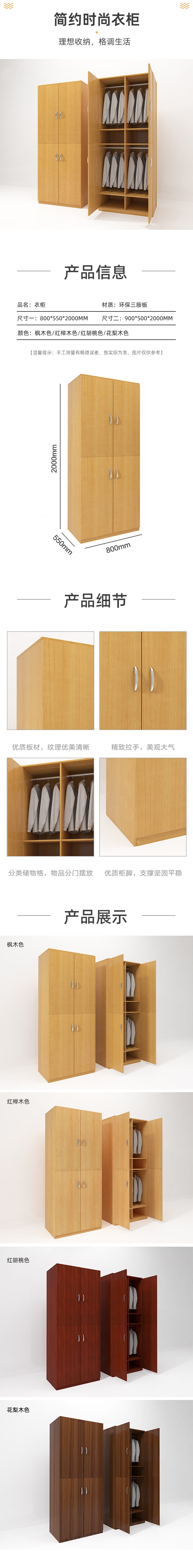 荣美盛 四门现代简约衣柜收纳柜/个 榉木色/800*550*2000mm