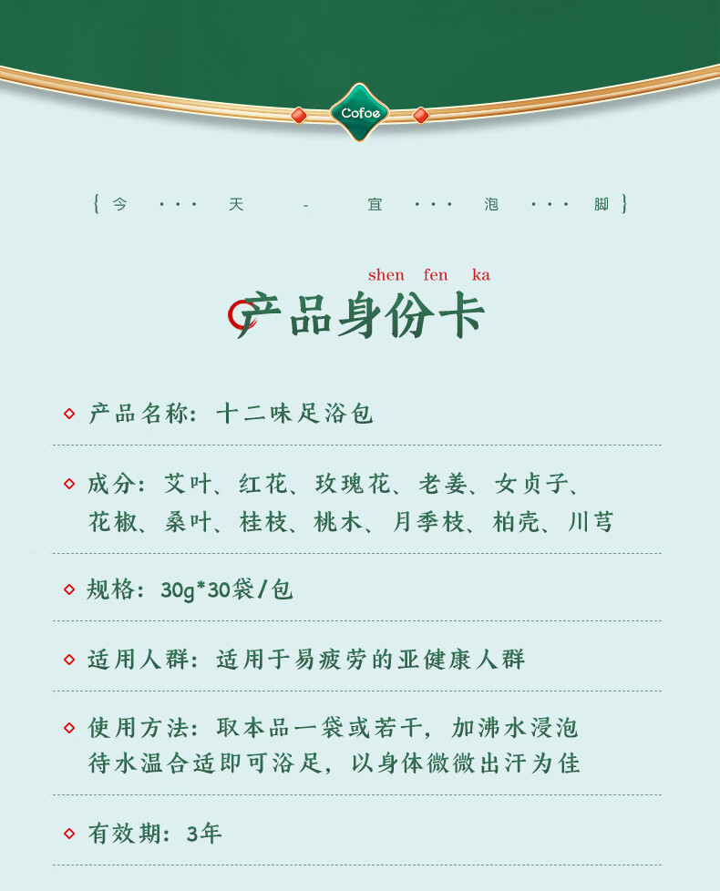 可孚十二味足浴包 30gX30包/袋 *2袋 军绿色