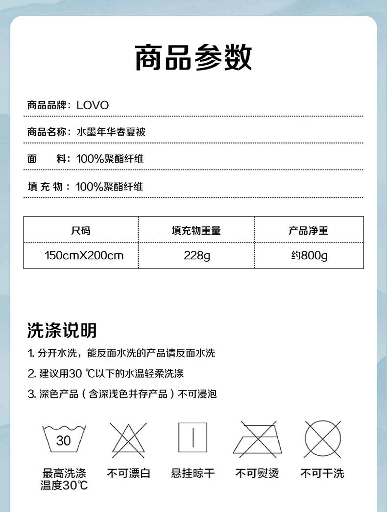罗莱LOVO 水墨年华夏被(床) 深蓝色 150*200cm