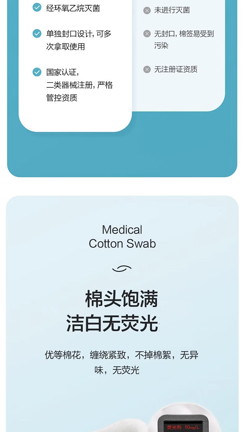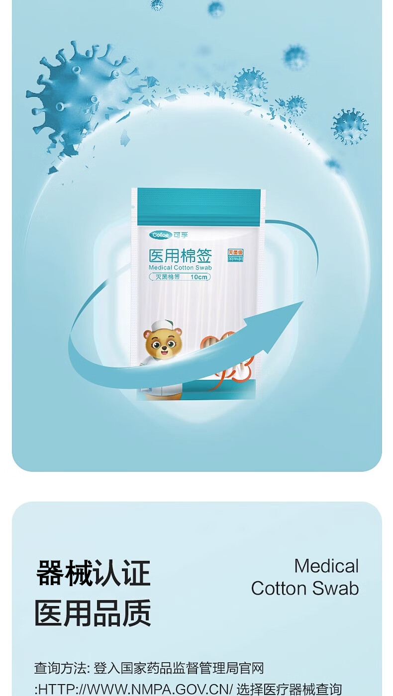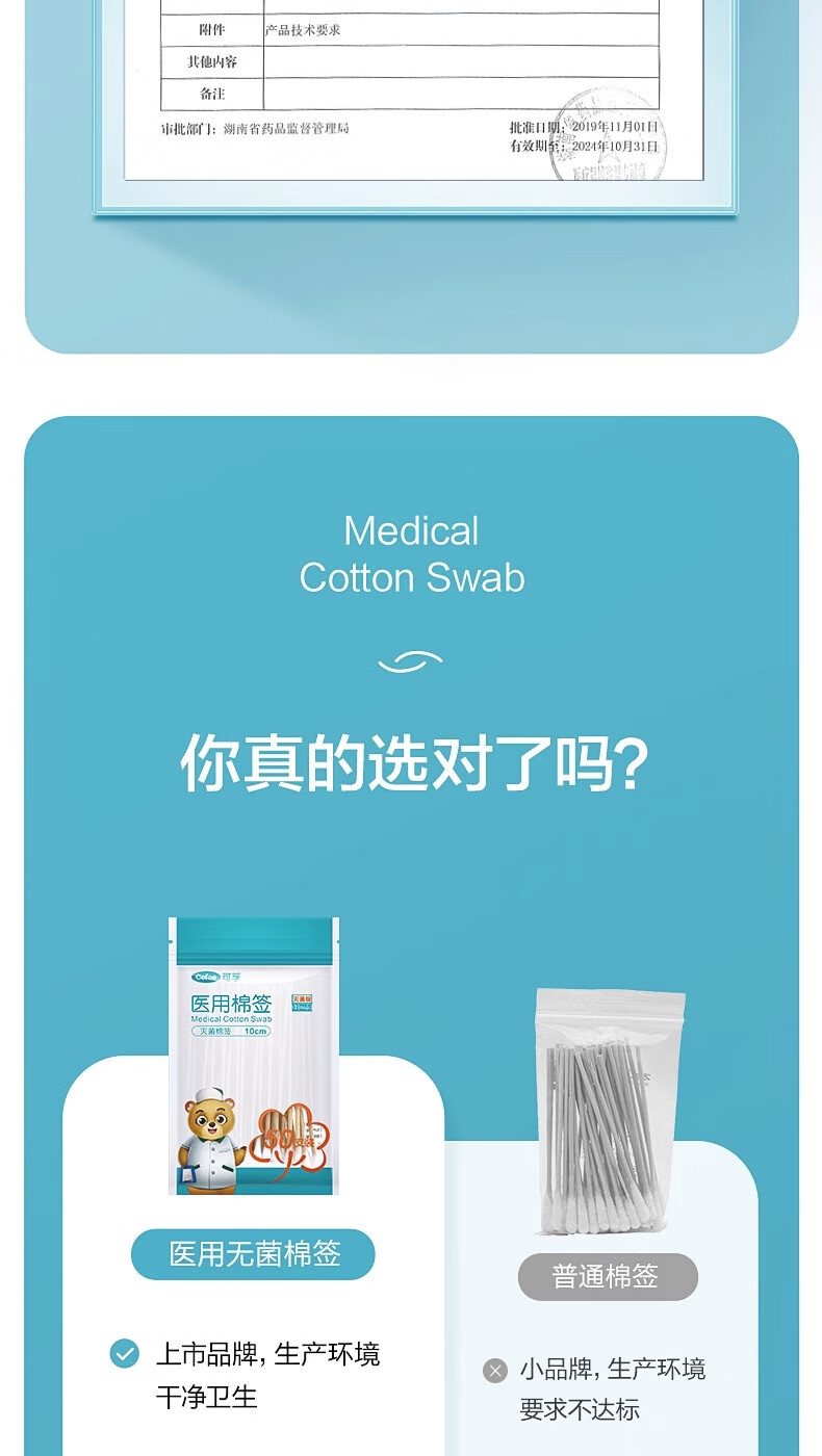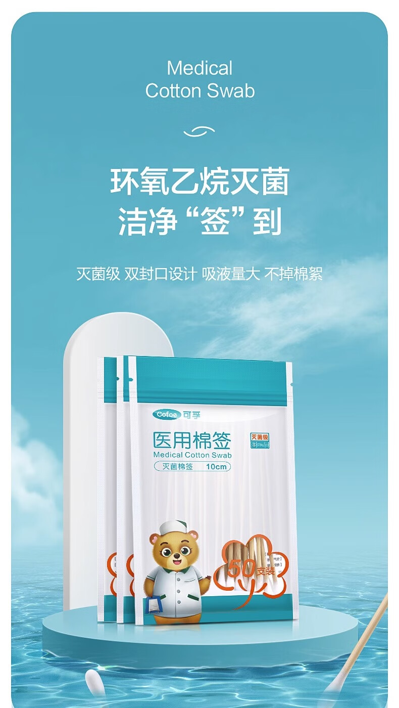 可孚棉签 灭菌棉签 10cmX50支 *20袋 白色