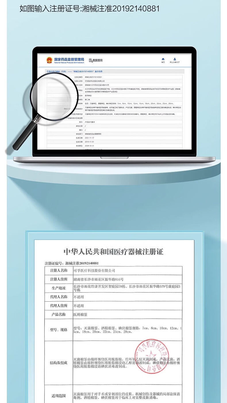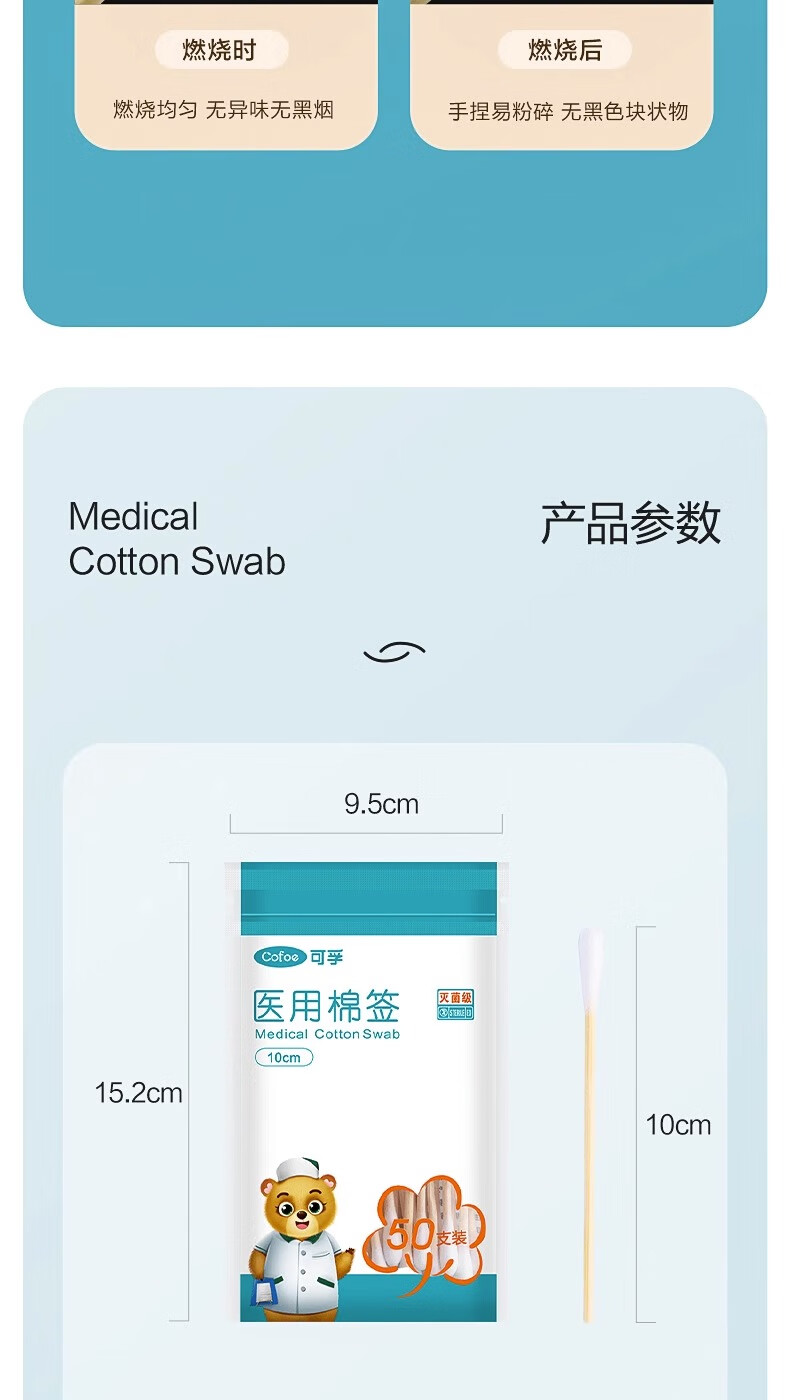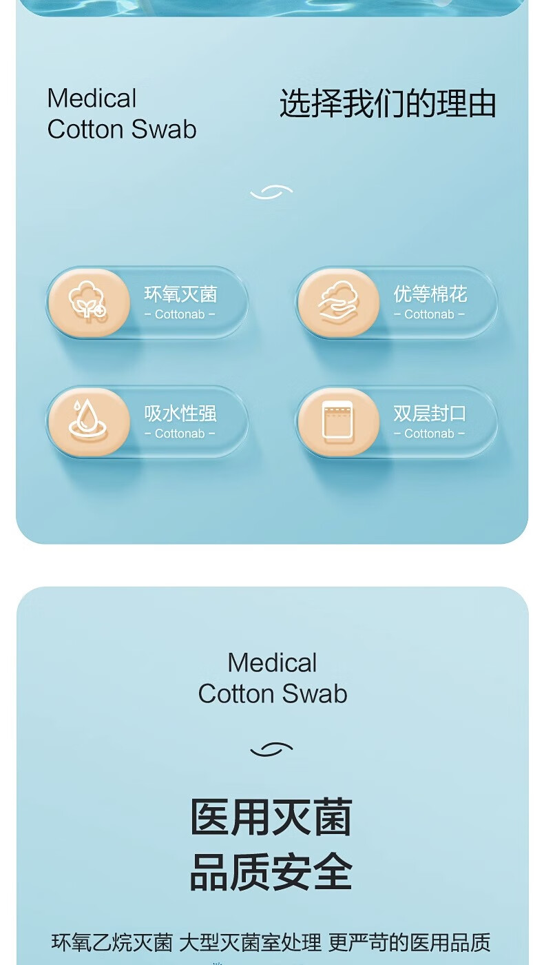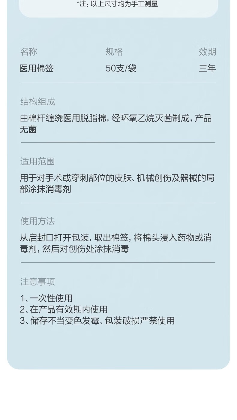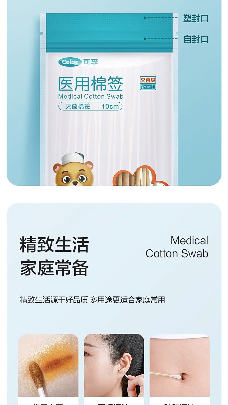 可孚棉签 灭菌棉签 10cmX50支 *20袋 白色