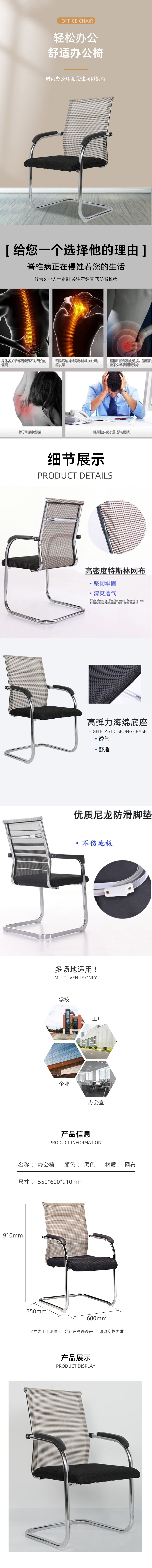 荣美盛 会议椅弓形脚培训椅员工办公椅职员电脑椅张 550*600*910mm