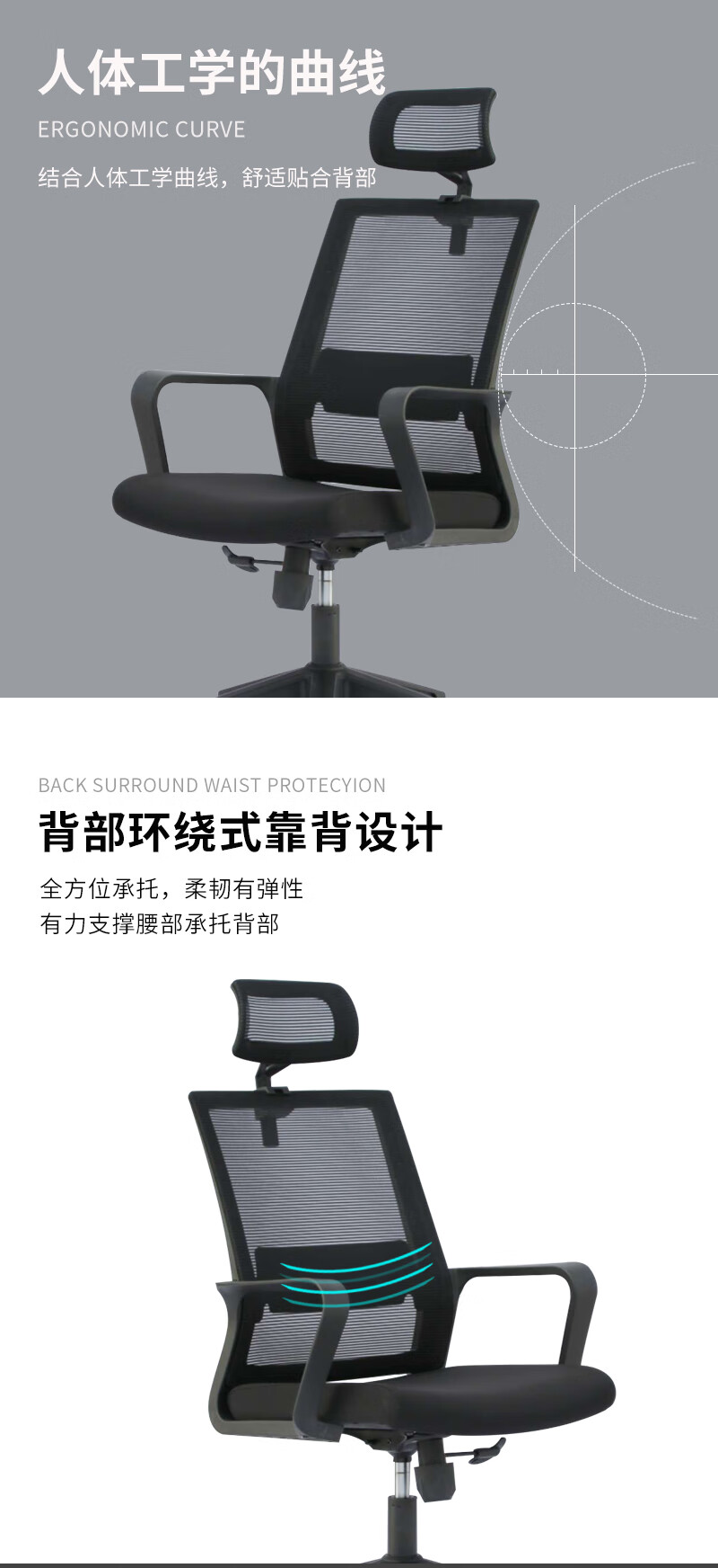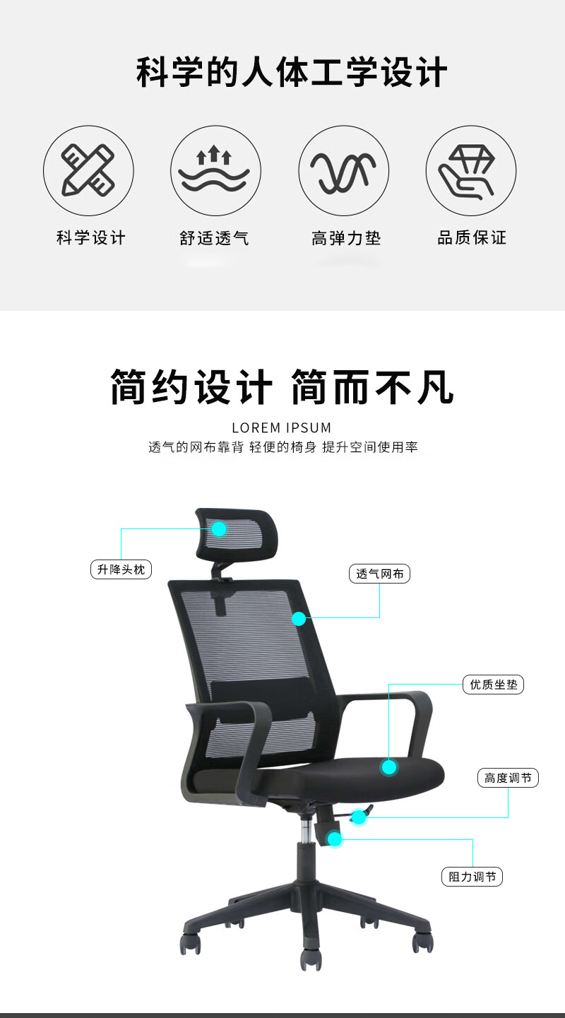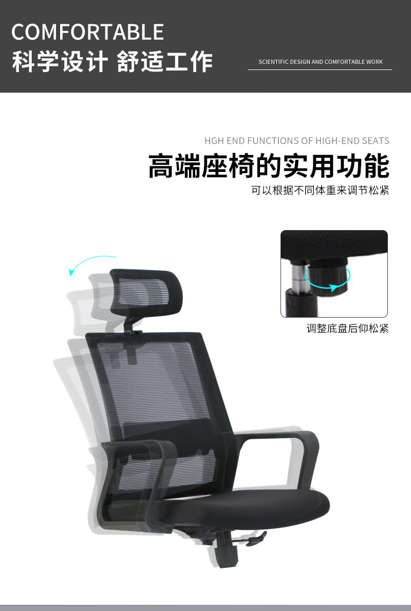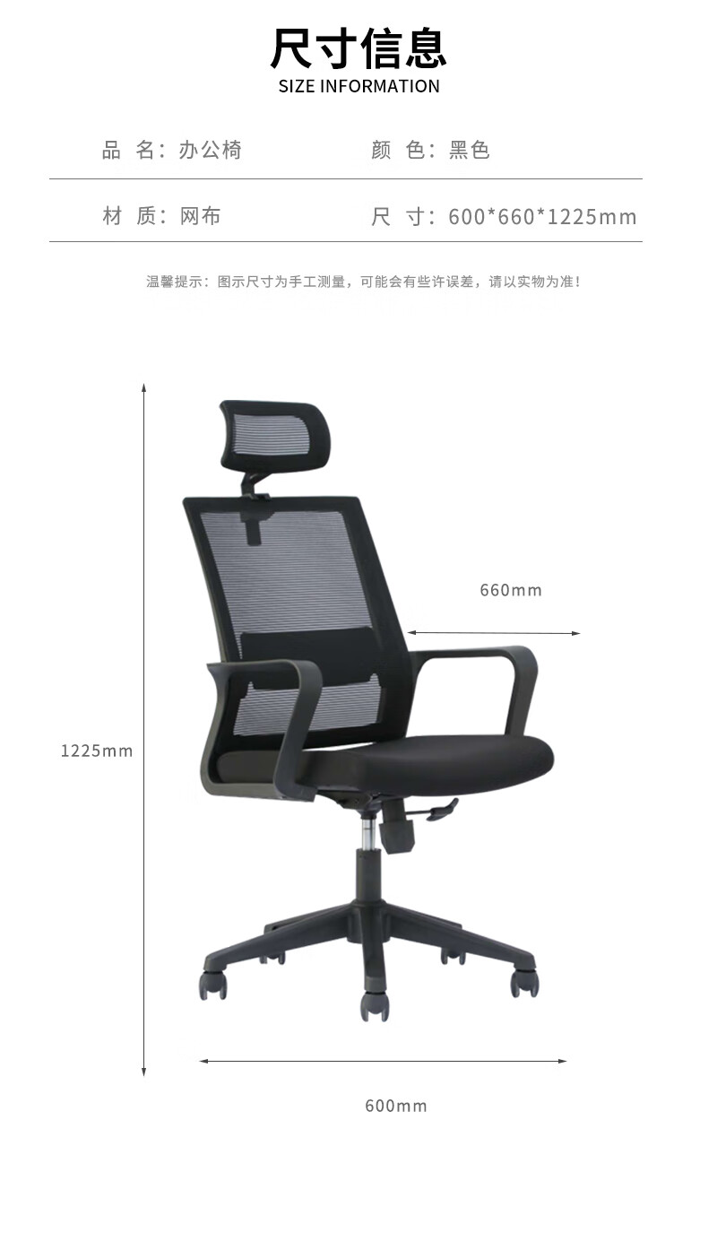 荣美盛 职员椅主管椅带头枕椅靠背椅 张 600W*660D*1225-1305H
