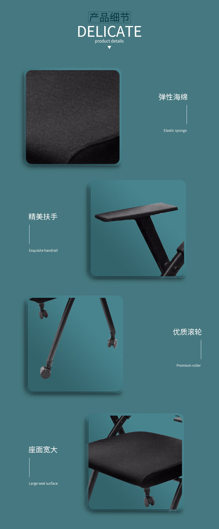 荣美盛 可移动会议椅培训椅靠背椅 张 620W*595D*865H