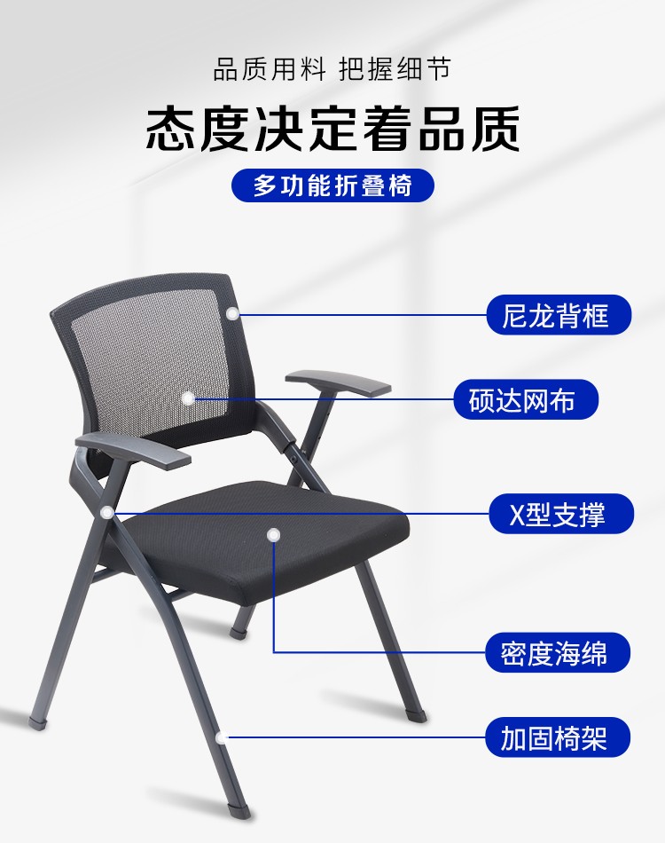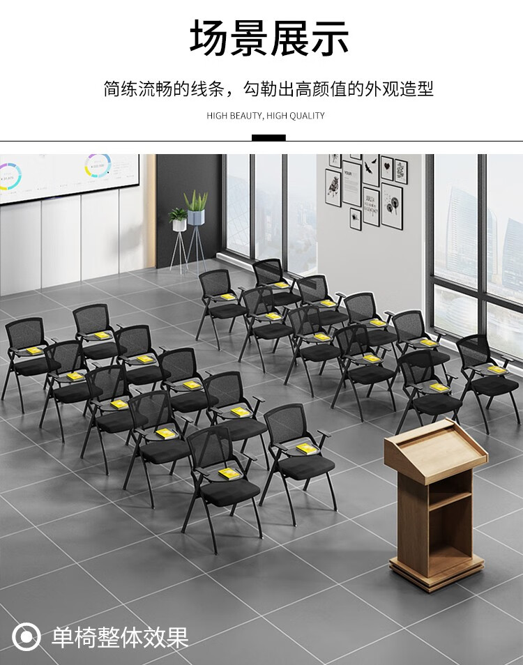 荣美盛 带写字板会议椅培训椅座椅 张 640W*595D*865H