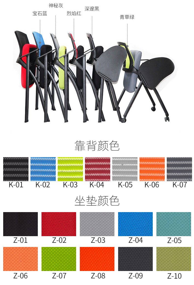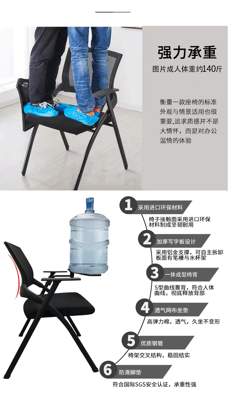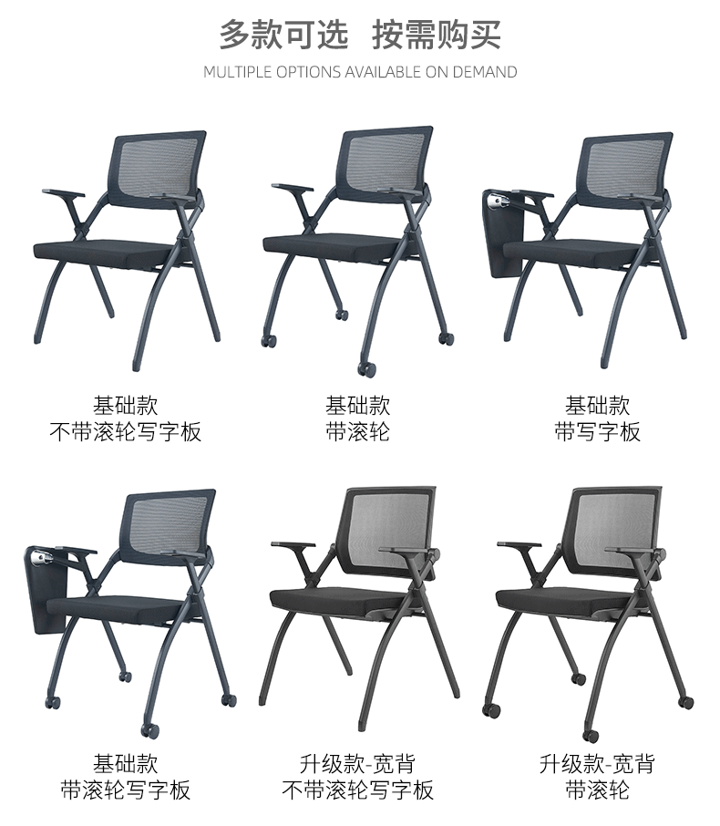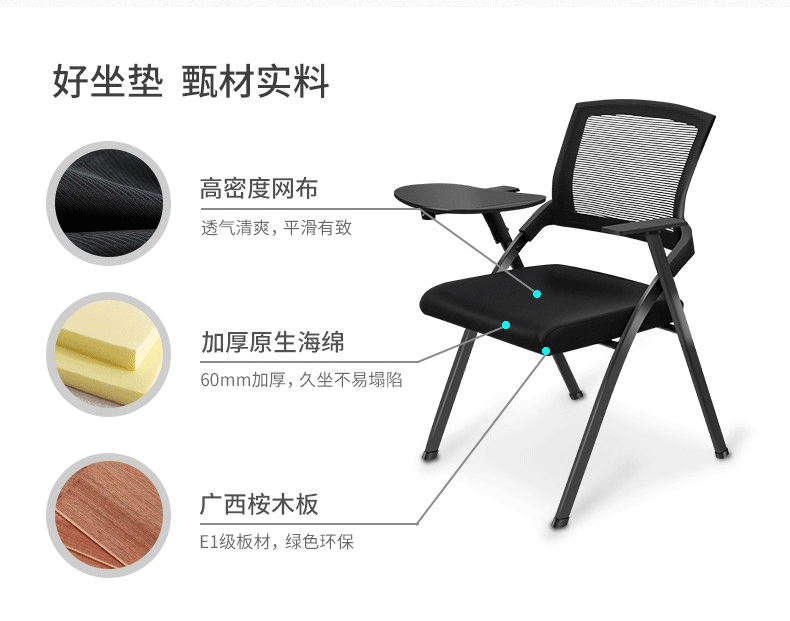 荣美盛 带写字板培训椅可移动会议椅 张 640W*595D*865H
