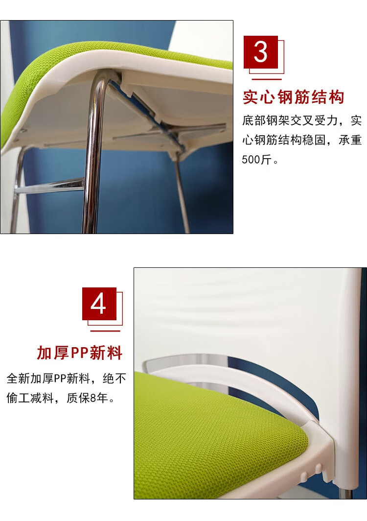 荣美盛 培训椅接待椅电脑椅白色靠背椅员工办公椅 张 400*430*780mm