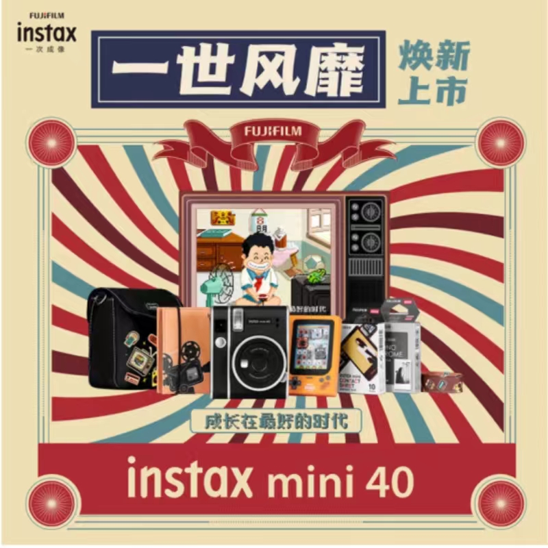 富士instax立拍立得 一次成像相机 mini40 一世风靡礼盒 相纸电池套装 单位:套 曜石黑