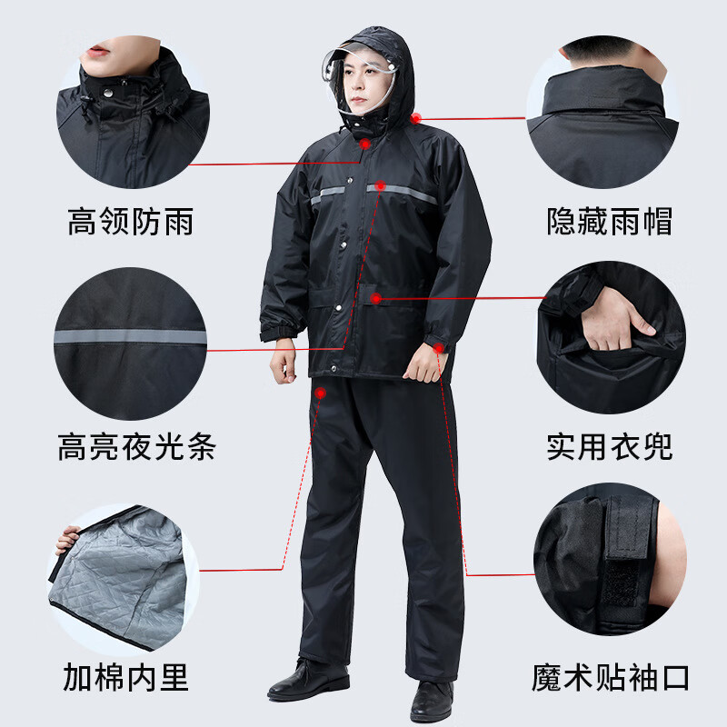 百舸 反光分体雨衣 加棉加厚套装 黑色L BG-ST-2321(单位:套) 黑色