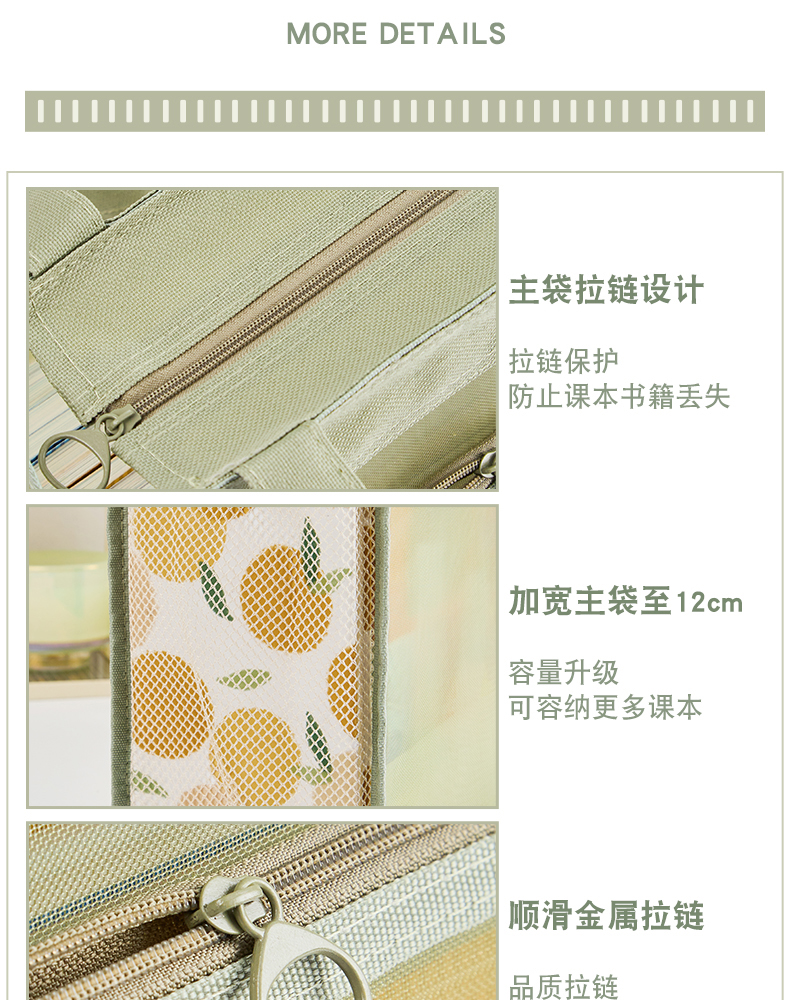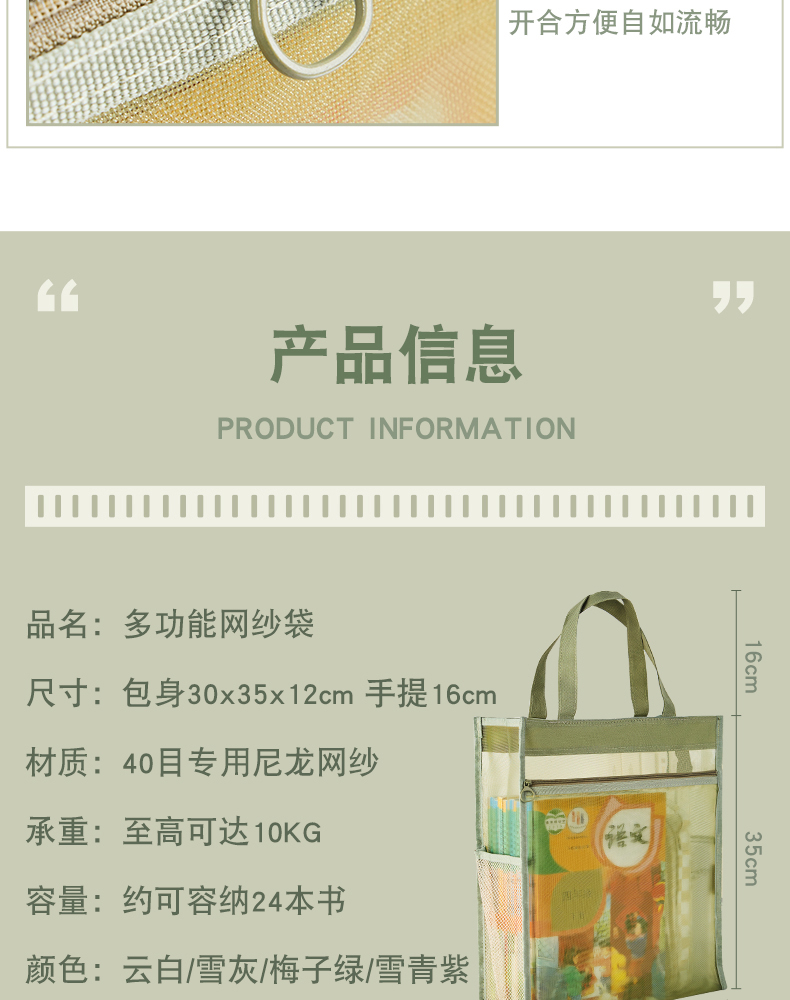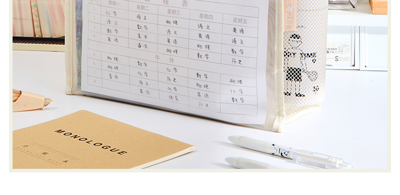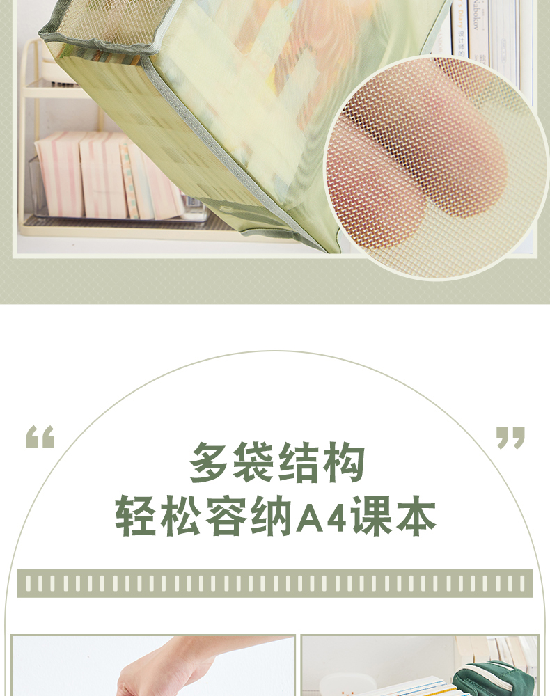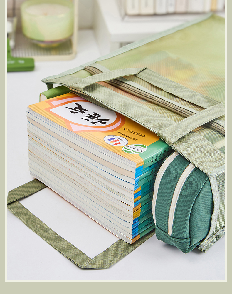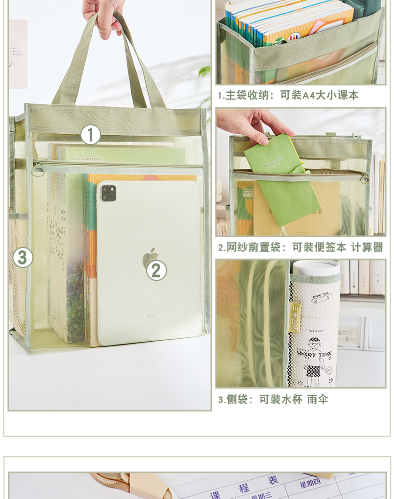 三年二班透明网纱手提补习袋学生用简约拎书袋作业文件袋补课袋双层大容量收纳袋儿童书包/个 云白