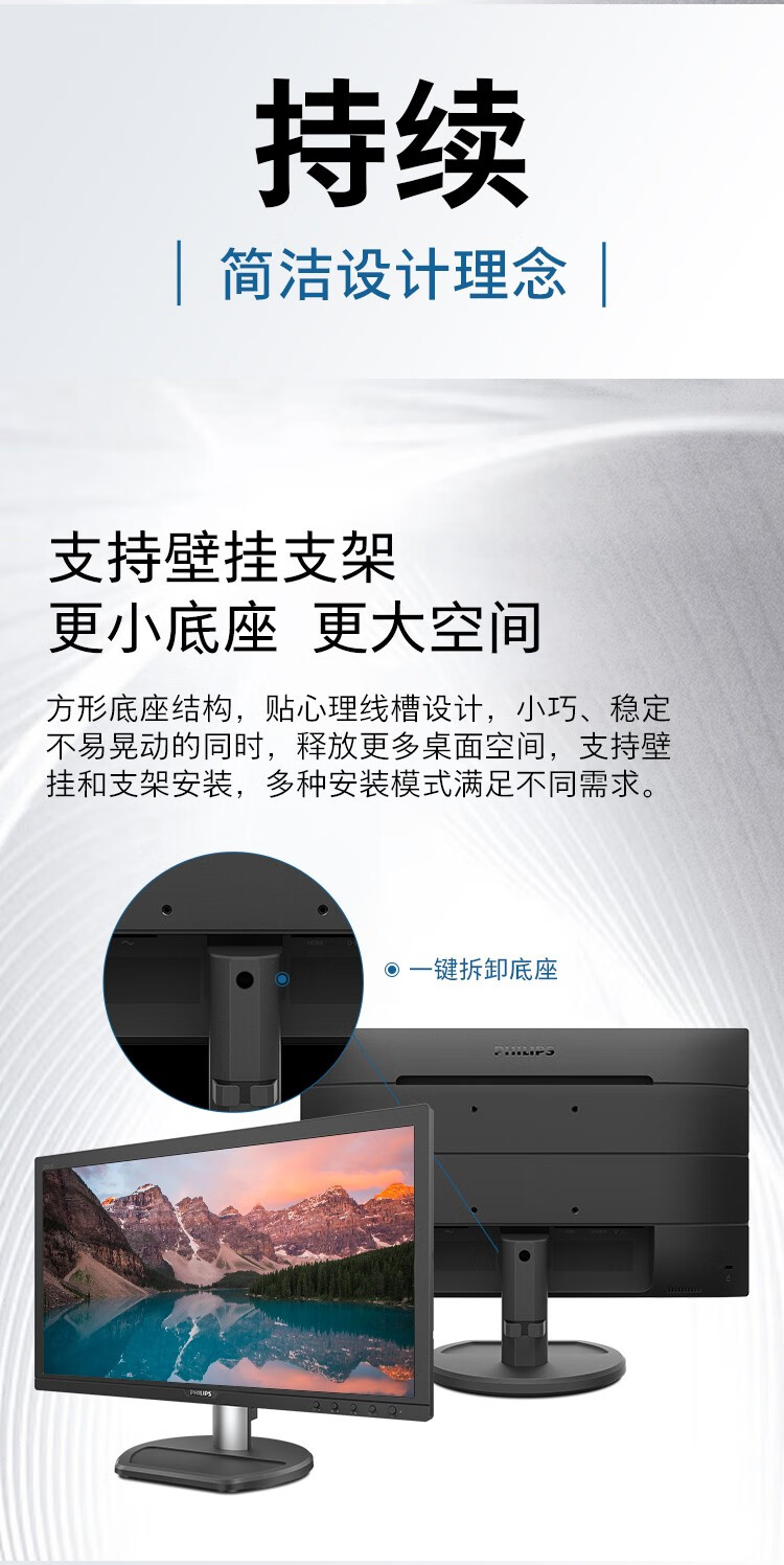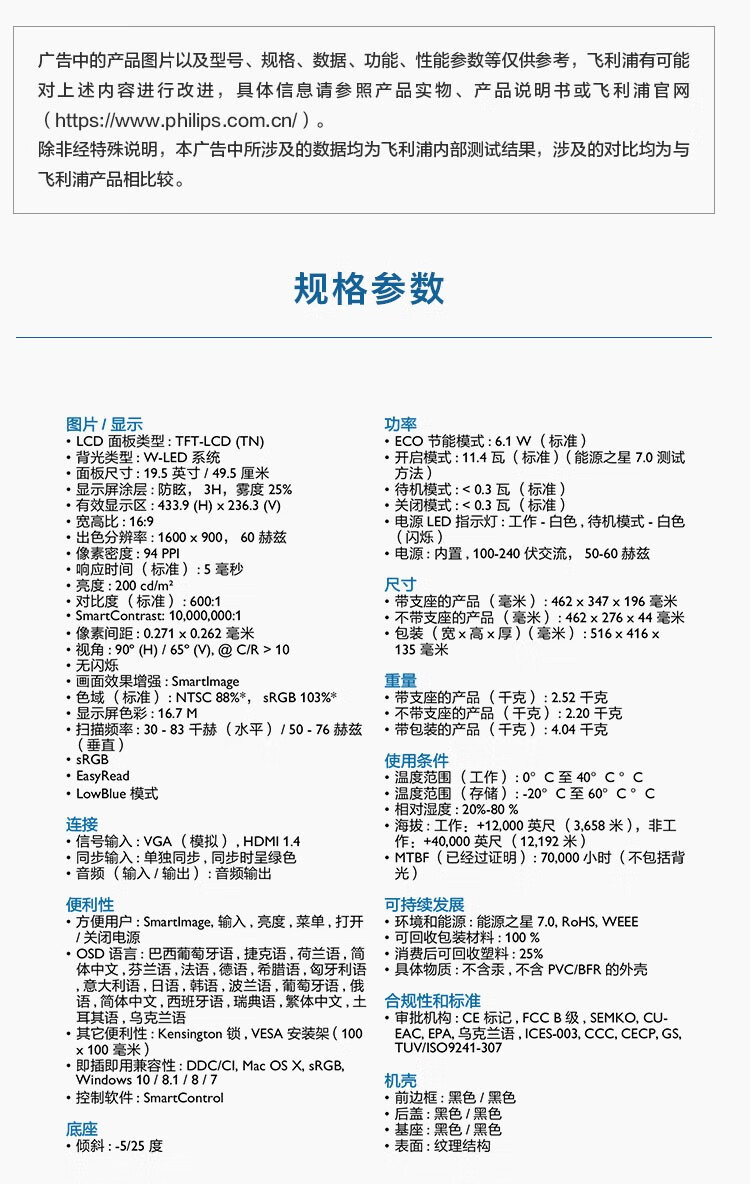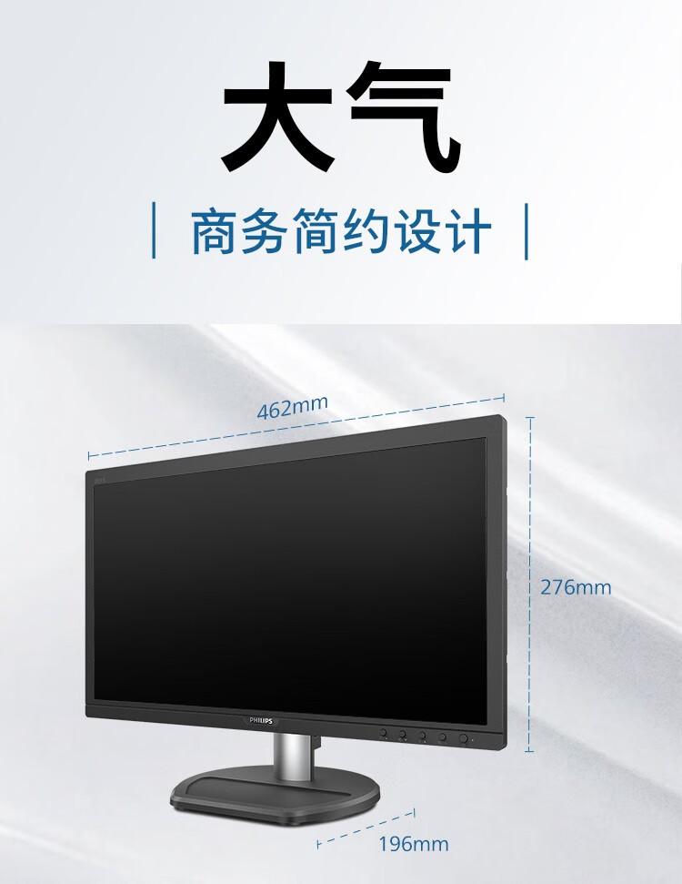 飞利浦(PHILIPS) 19.5英寸 商用高清显示器 TUV低蓝光护眼不闪屏 VGA+HDMI 支 黑色