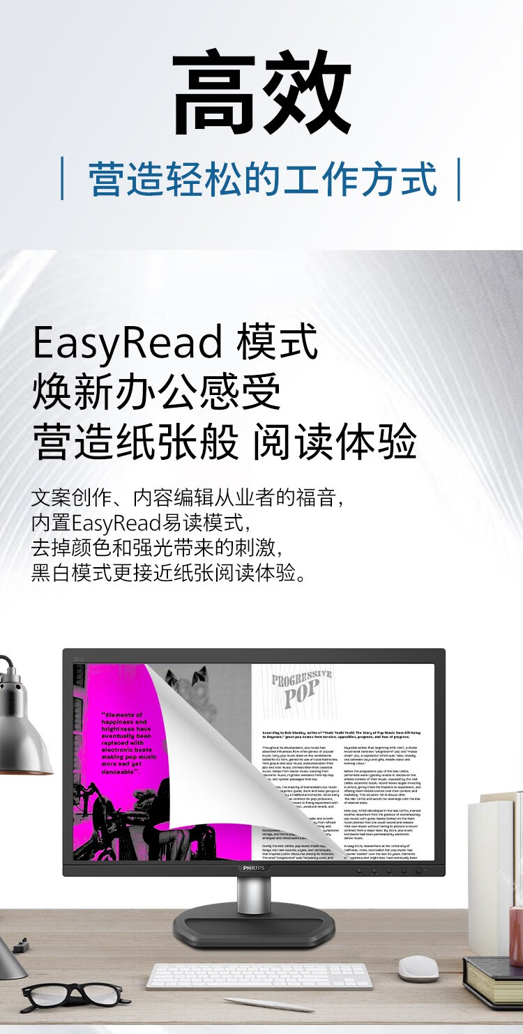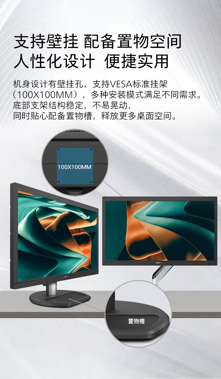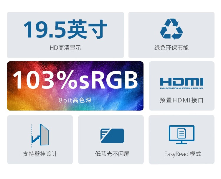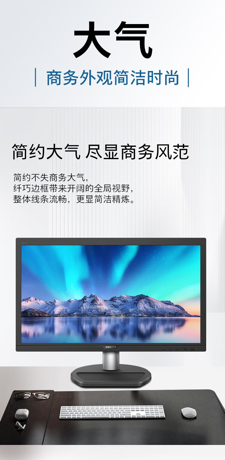飞利浦(PHILIPS) 19.5英寸 商用高清显示器 TUV低蓝光护眼不闪屏 VGA+HDMI 支 黑色