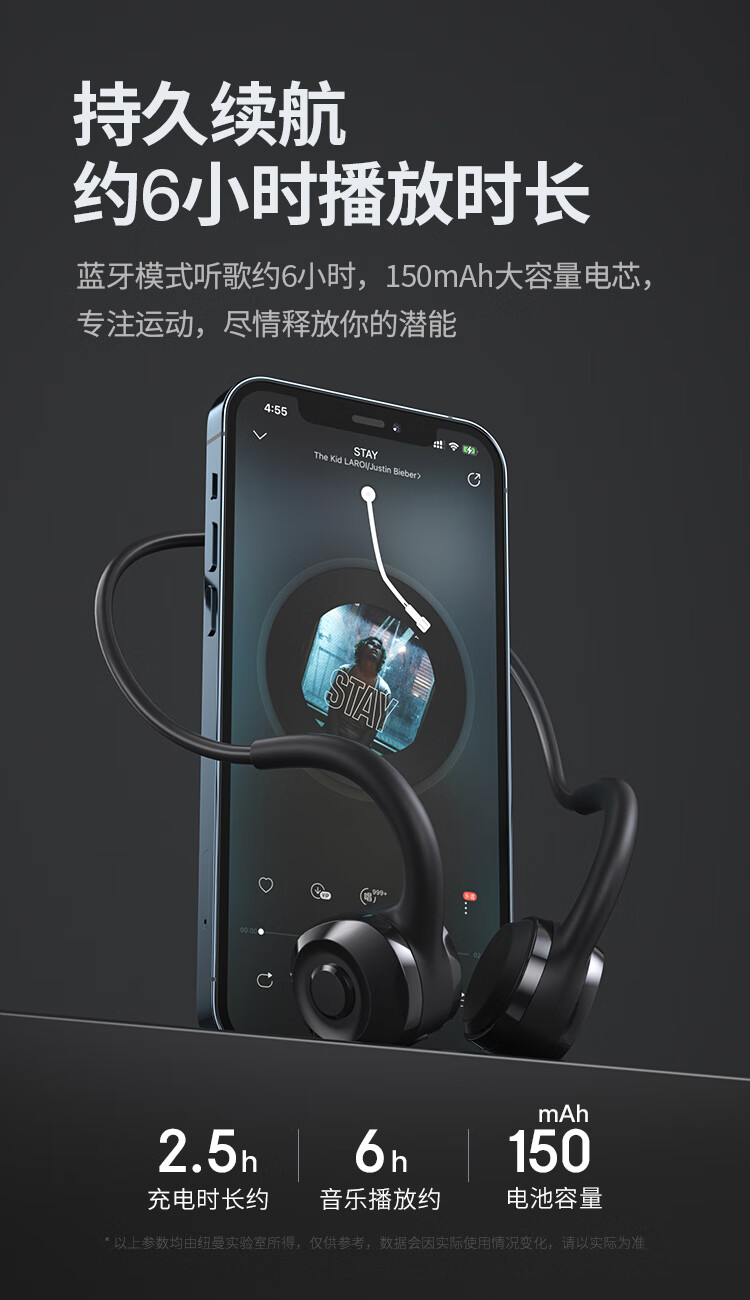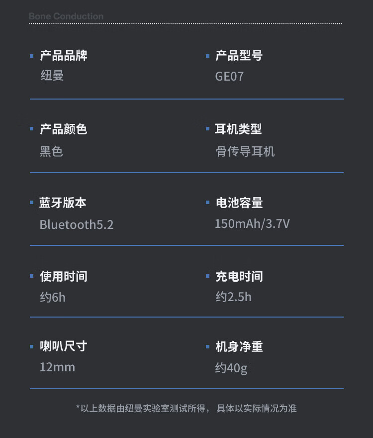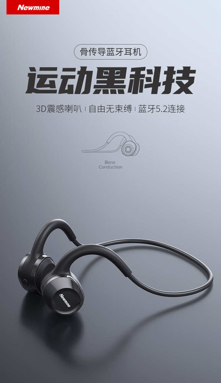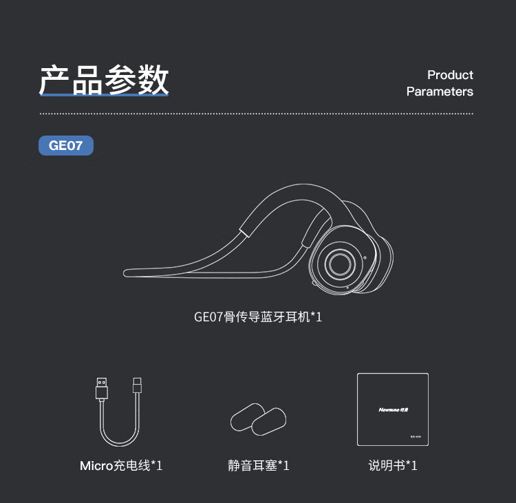 纽曼GE07骨传导蓝牙耳机黑色(单位:个) 曜石黑