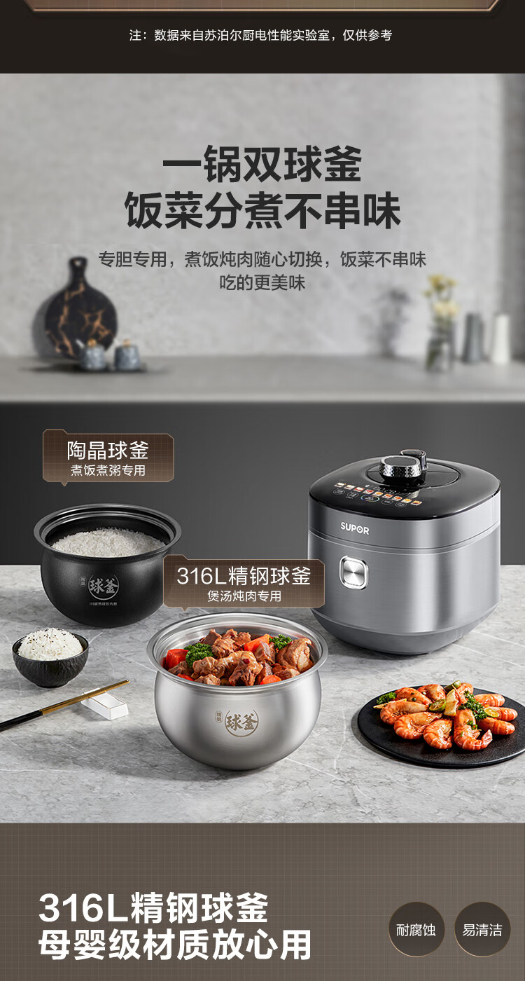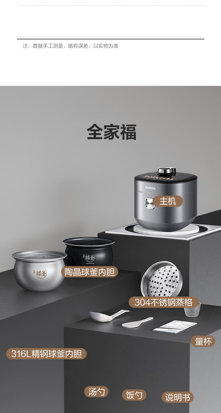 苏泊尔 IH电压力锅5L SY-50HC8015Q+米技空气炸锅3L AF-L3012(单位:台) 灰色