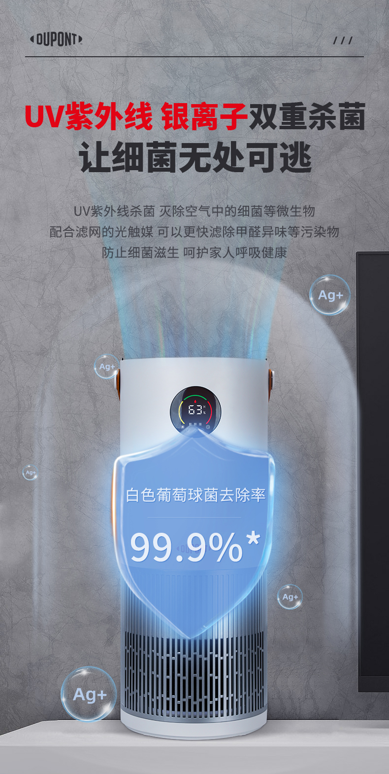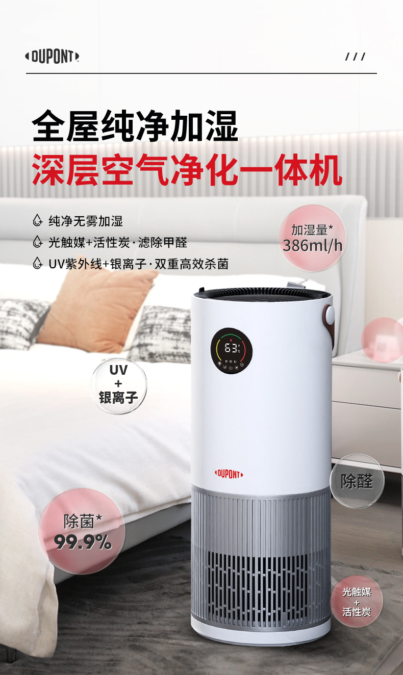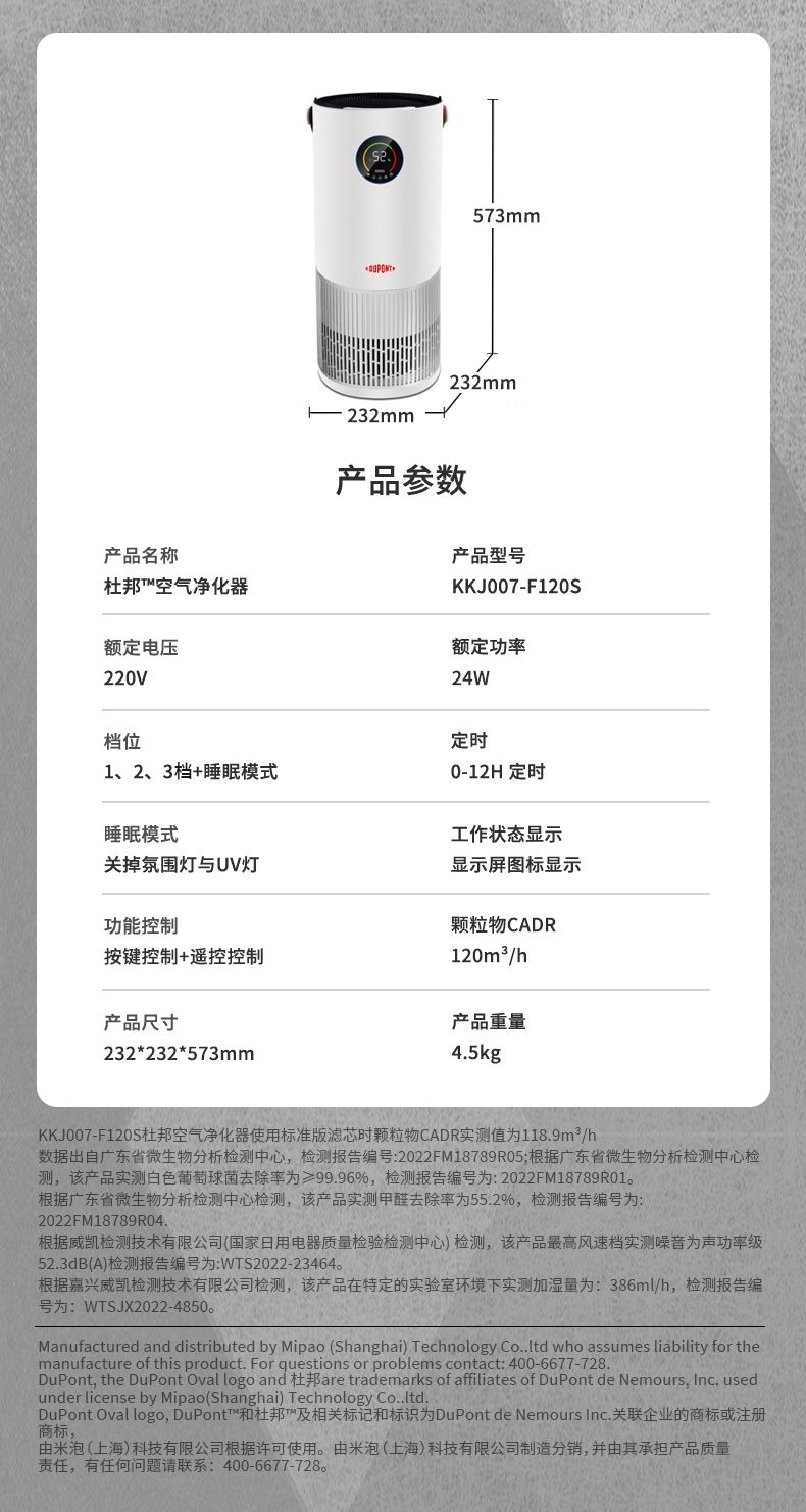 杜邦(DUPONT) KKJ007-F120S空气净化器 适用面积:20㎡以下(单位:台) 本白色