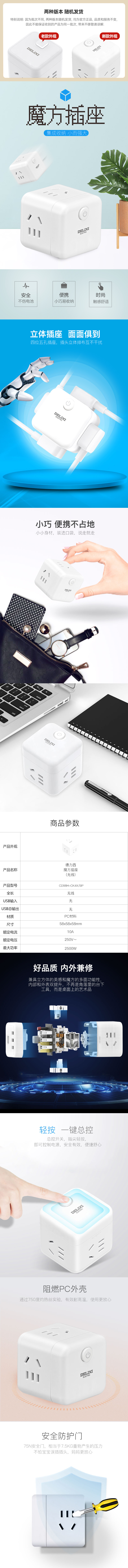 德力西电气四位五孔魔方插座无线 CD98H-CK4X/BP 只 白色