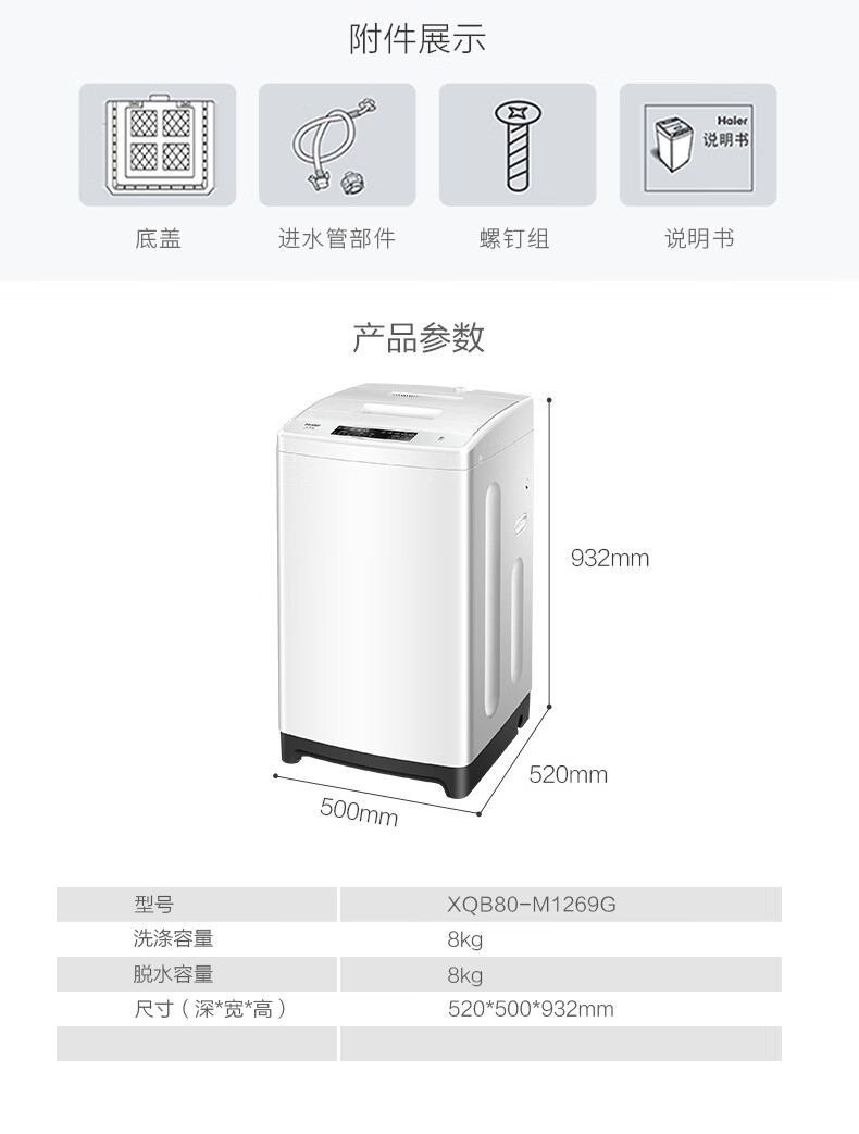 海尔(Haier) XQB80-M1269G 全自动波轮洗衣机 白色