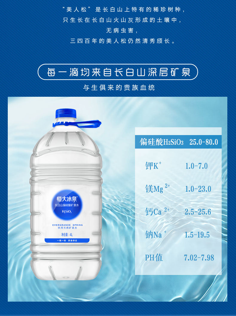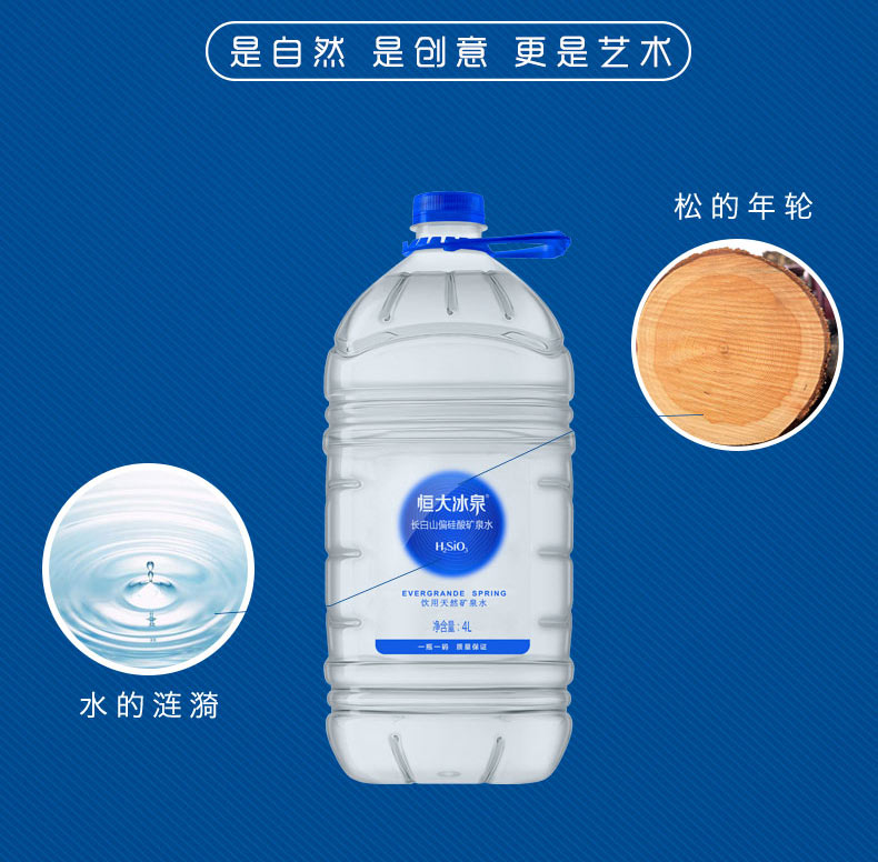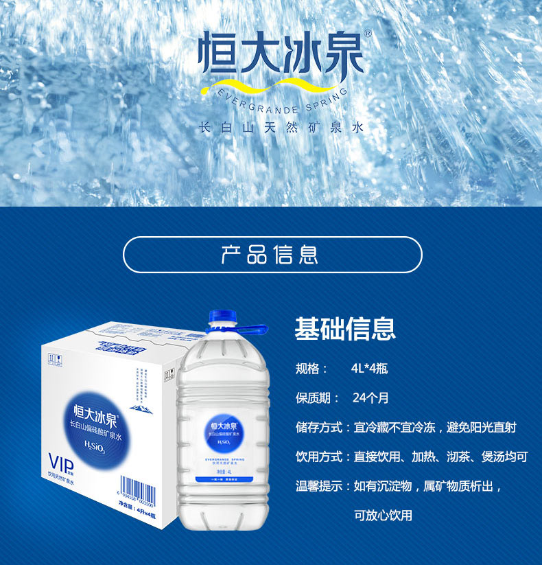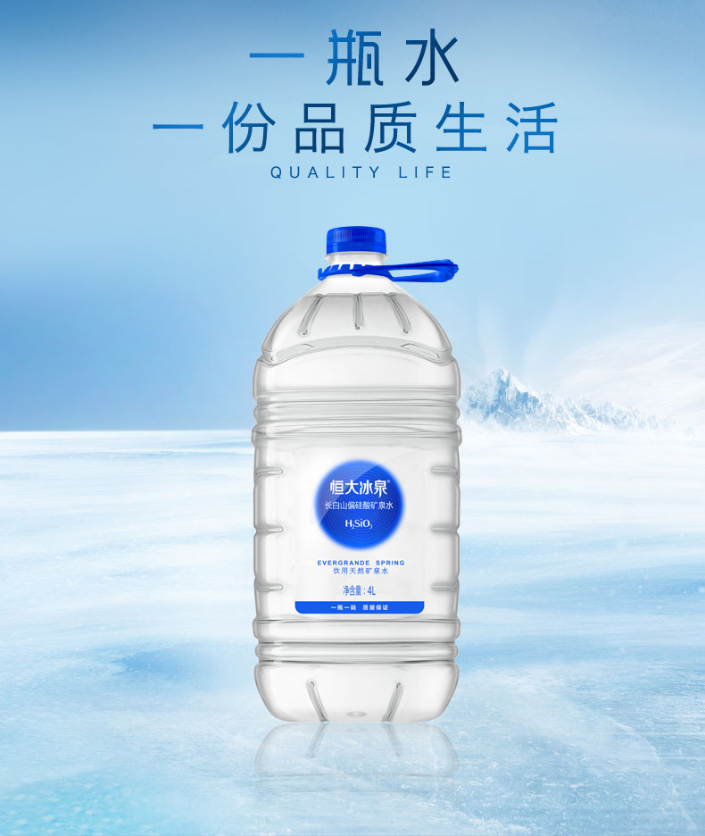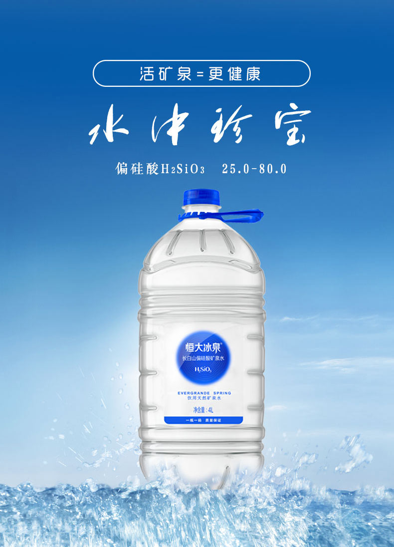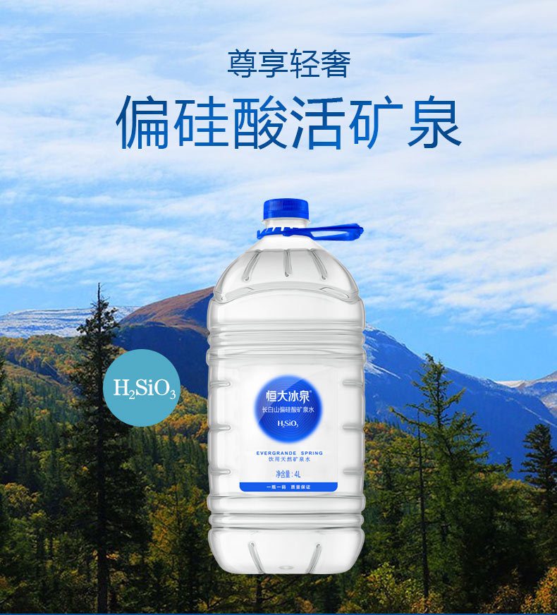 恒大冰泉长白山偏硅酸矿泉水 4L*4 单位:箱 蓝色