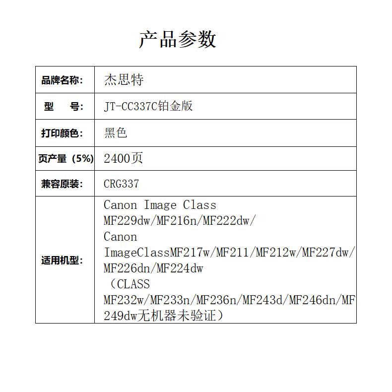 杰思特CRG337硒鼓JT-CC337C铂金版适用佳能MF229dw MF216n MF2221支装 黑色