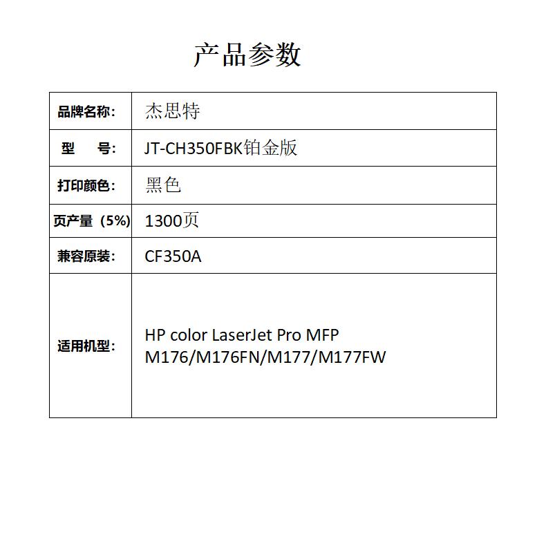 杰思特CF350A黑色硒鼓JT-CH350FBK铂金版适用惠普M176n M177fw 1支装 黑色