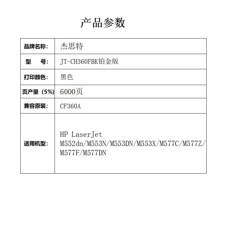 杰思特CF360A黑色硒鼓JT-CH360FBK铂金版适用惠普508A M553N M553DN1支 黑色