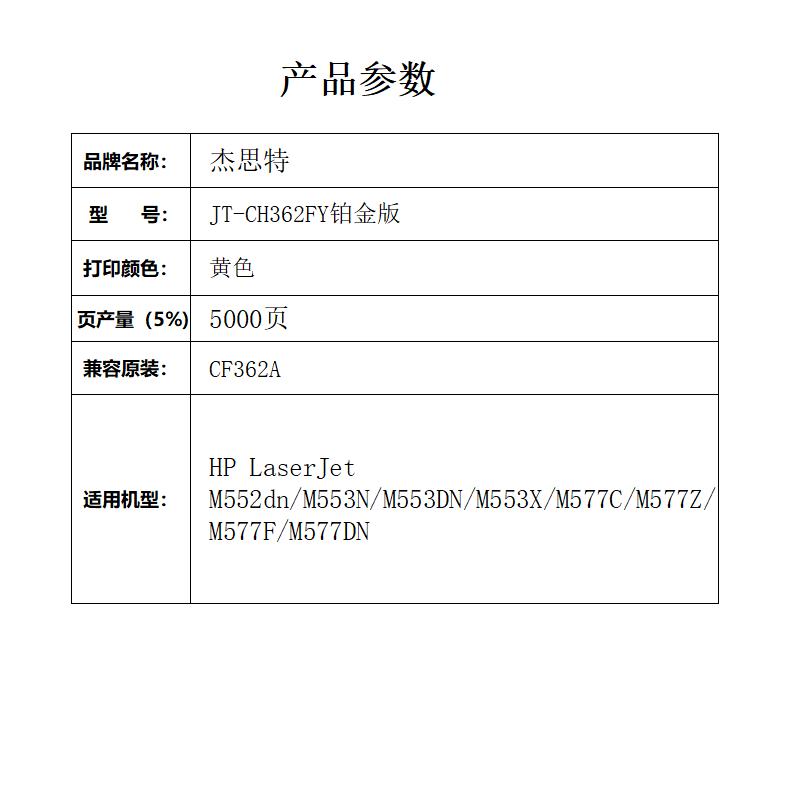 杰思特CF362A黄色硒鼓JT-CH362FY铂金版适用惠普508A M553N M553DN 1支 黄色