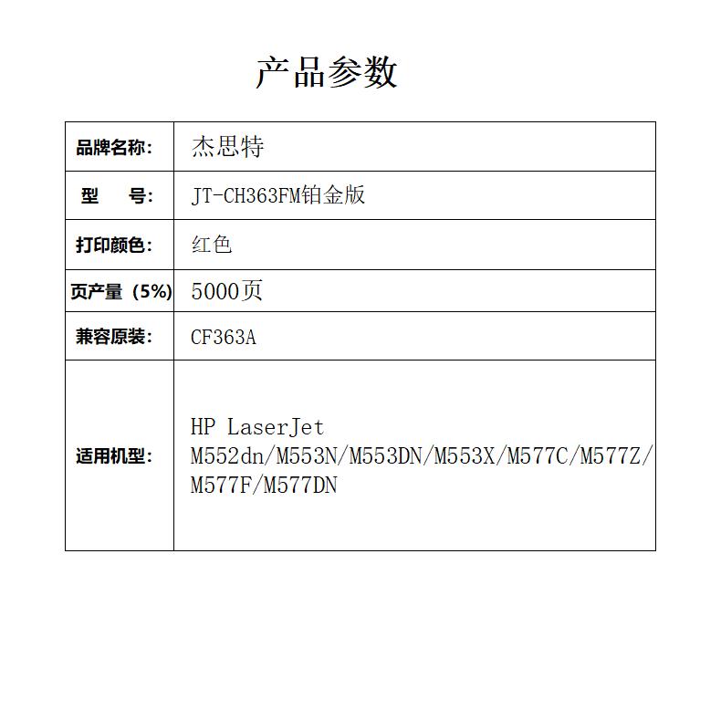 杰思特CF363A红色硒鼓JT-CH363FM铂金版适用惠普508A M553N M553DN1支装 红色