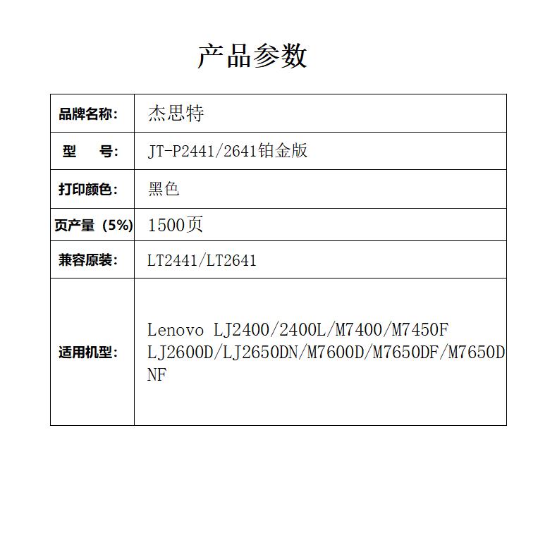 杰思特LT2441墨粉盒JT-P2441/2641铂金版铂金版适用Lenovo 24001支装 黑色