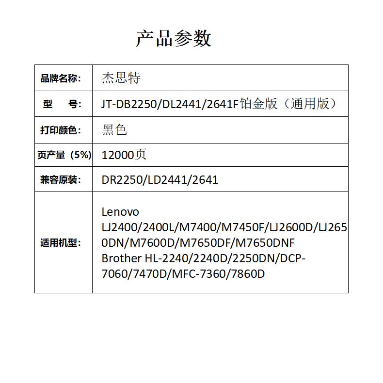 杰思特JT-DB2250/DL2441/2641F铂金版适用兄弟HL-2240/2240D1支装 黑色