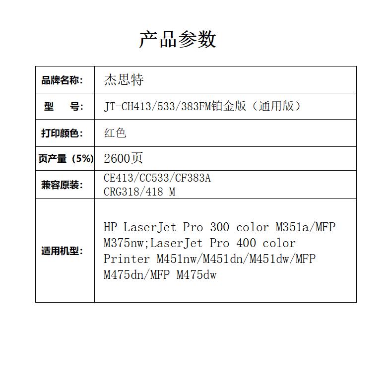杰思特JT-CH413/533/383FM铂金版适用惠普M351a/MFP M375nw 1支装 红色