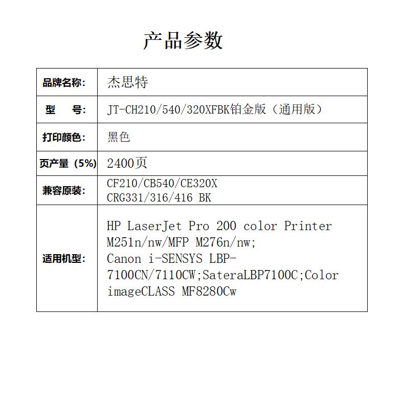 杰思特JT-CH210/540/320XFBK铂金版适用惠普M251n/MFP/CP12151 支 黑色