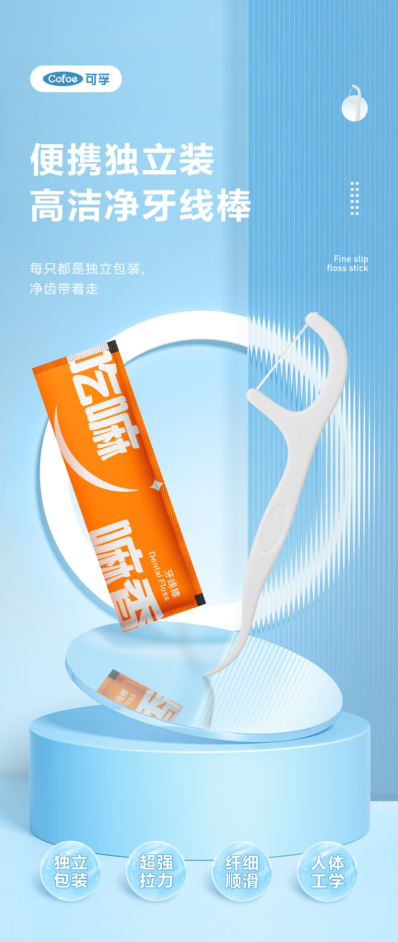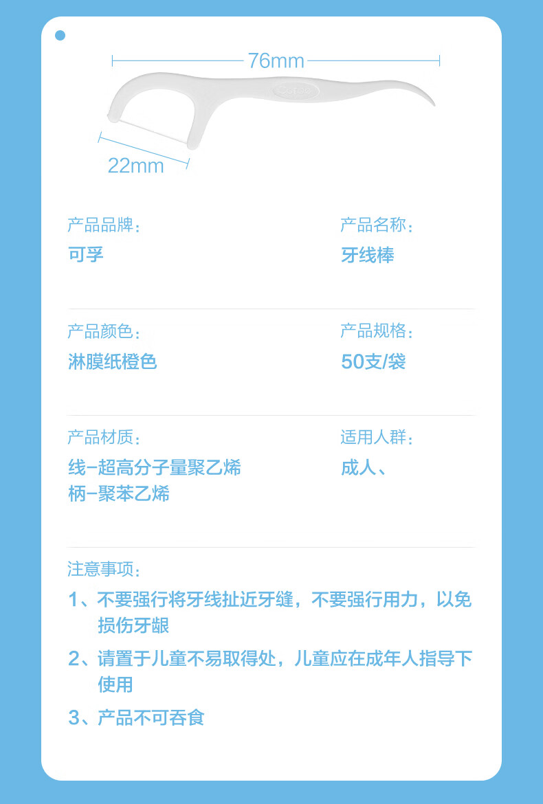 可孚牙线棒 KD-YXB-02,50支/袋(淋膜纸)*3袋 粉色