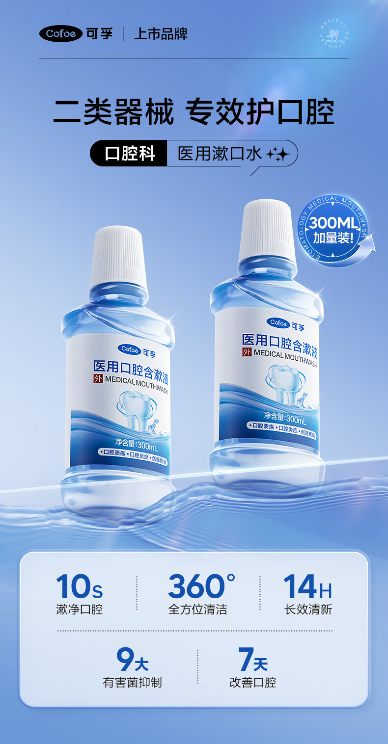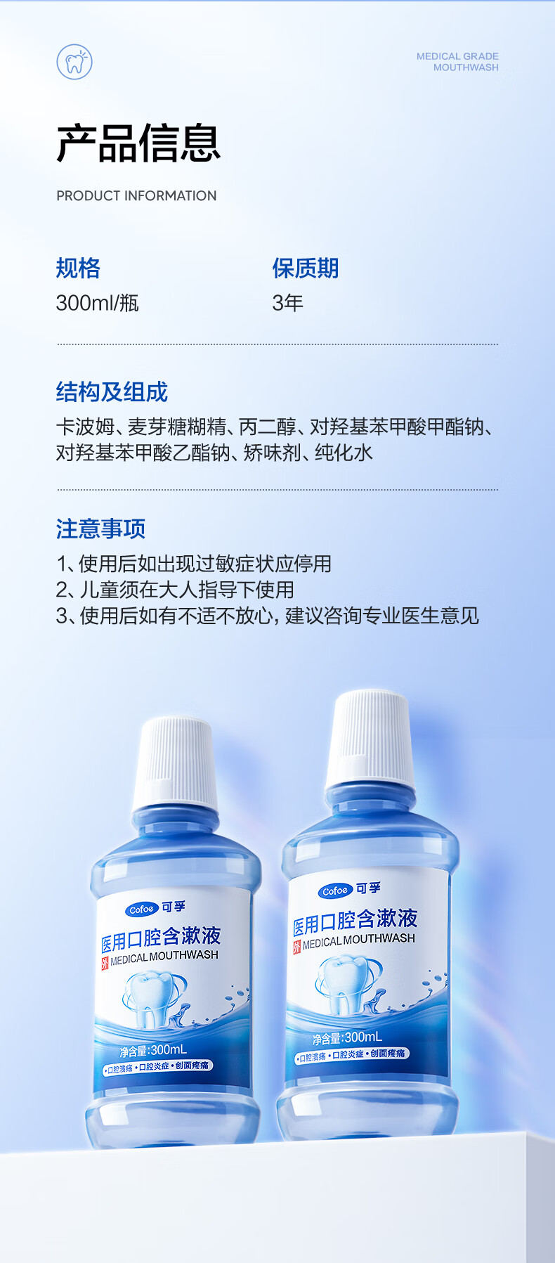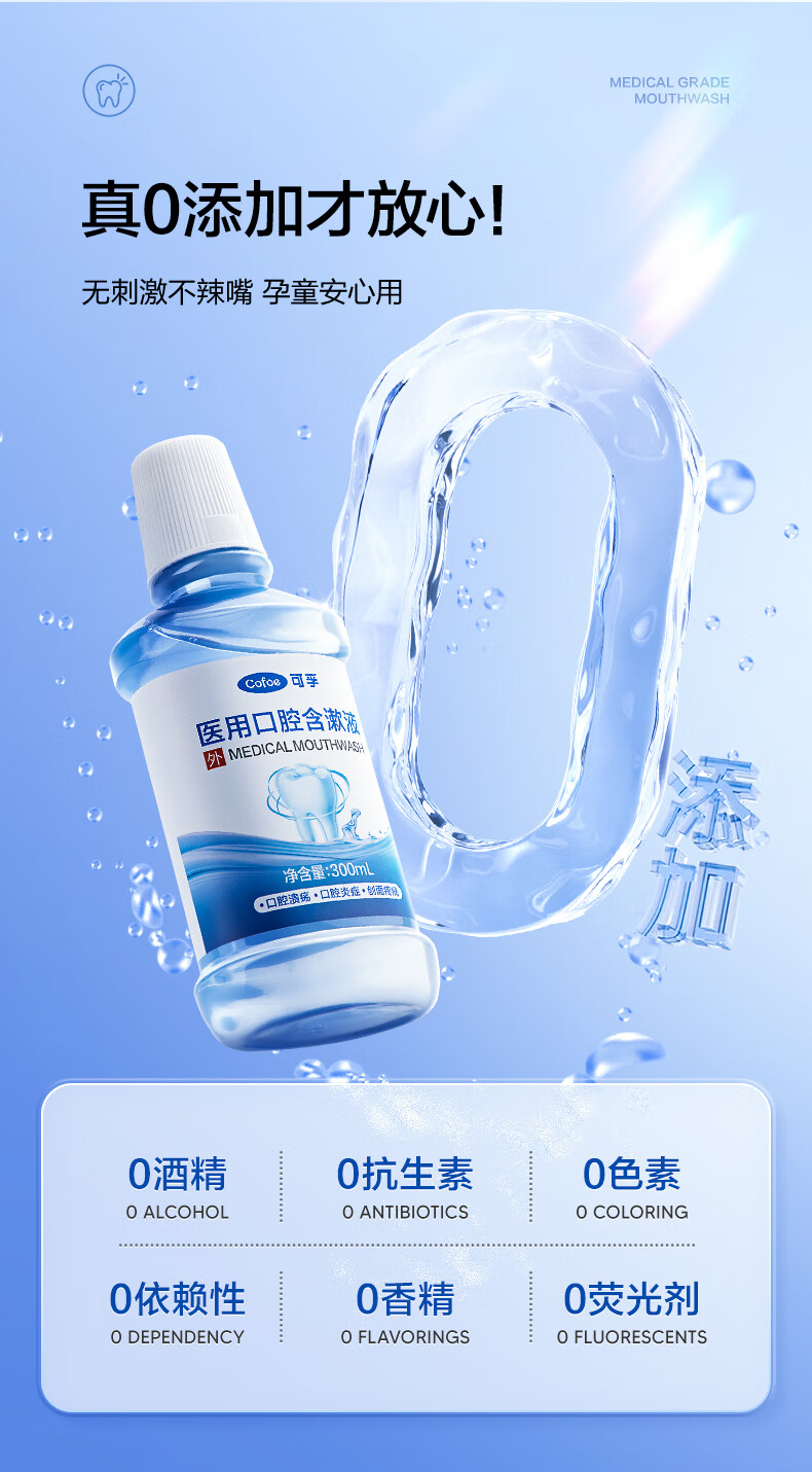 可孚口腔含漱液 漱口水便携 300mL/支*2支 水蓝色