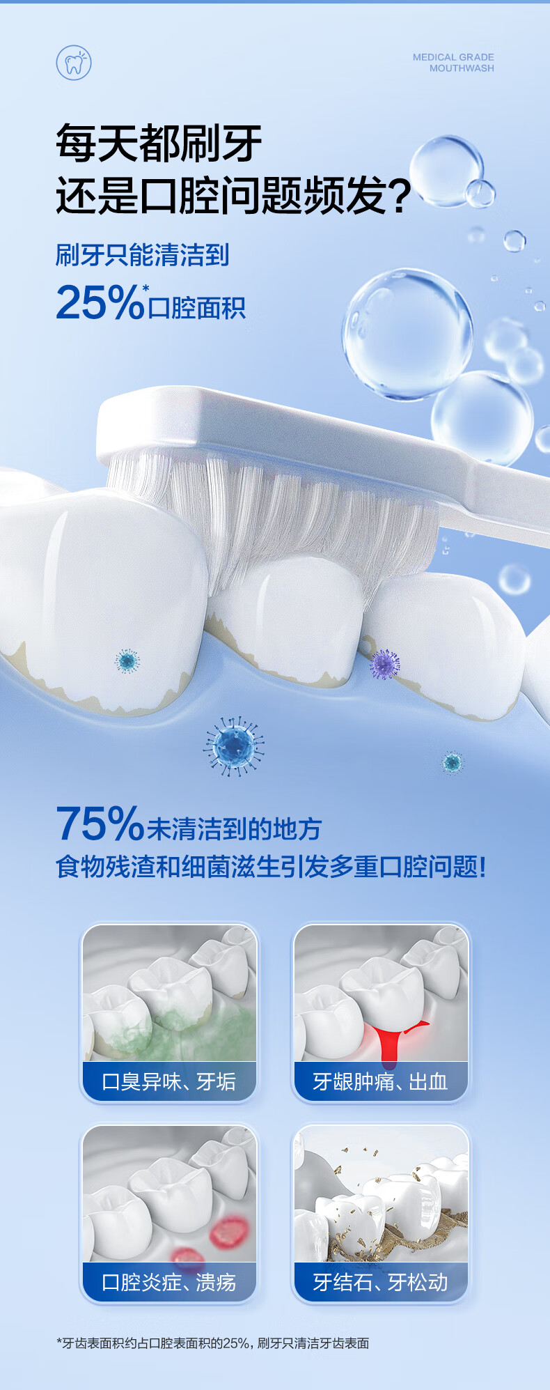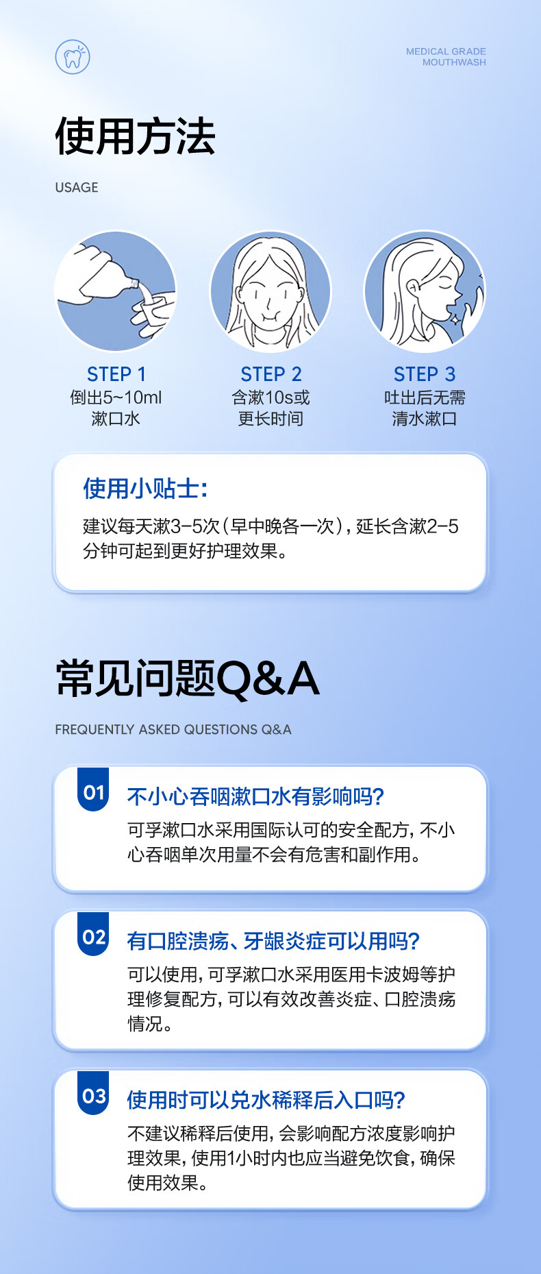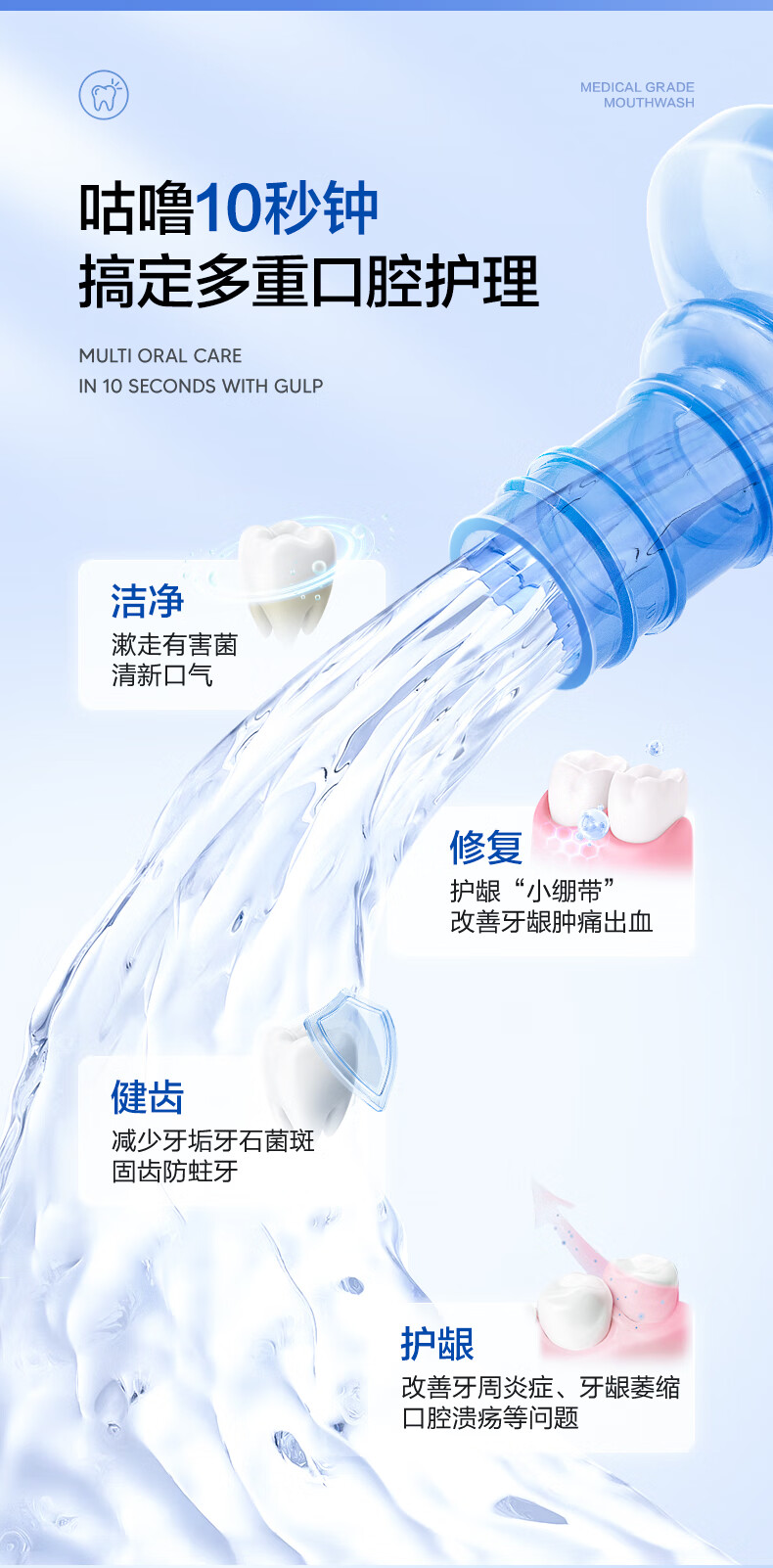可孚口腔含漱液 漱口水便携 300mL/支*2支 水蓝色
