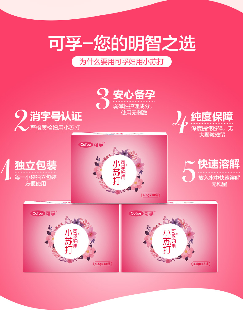 可孚妇用小苏打 4.5gX18包/盒*4盒 粉色