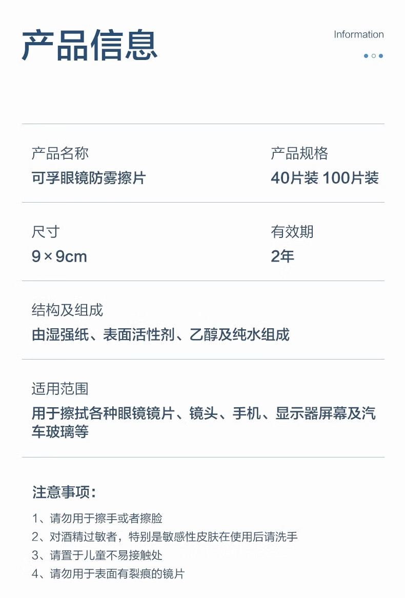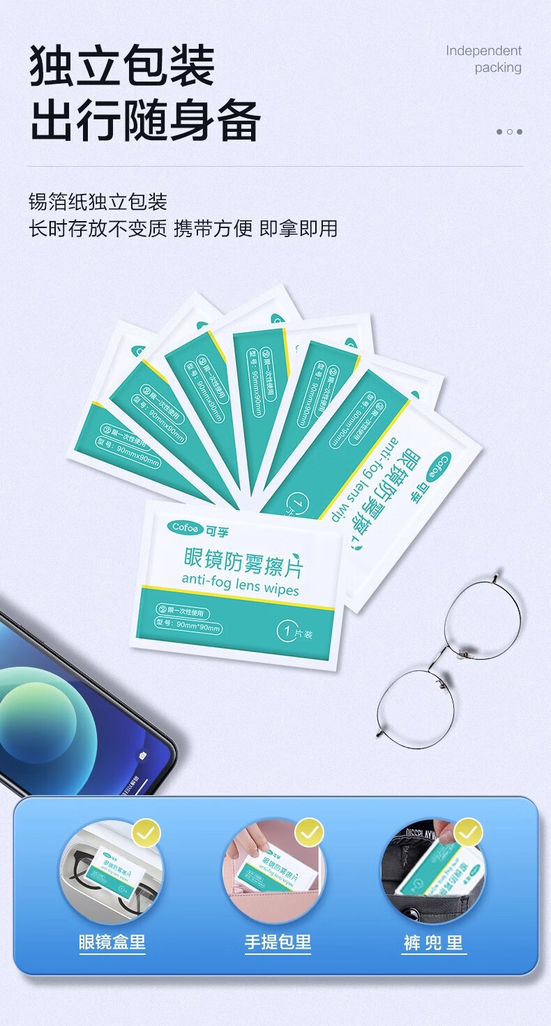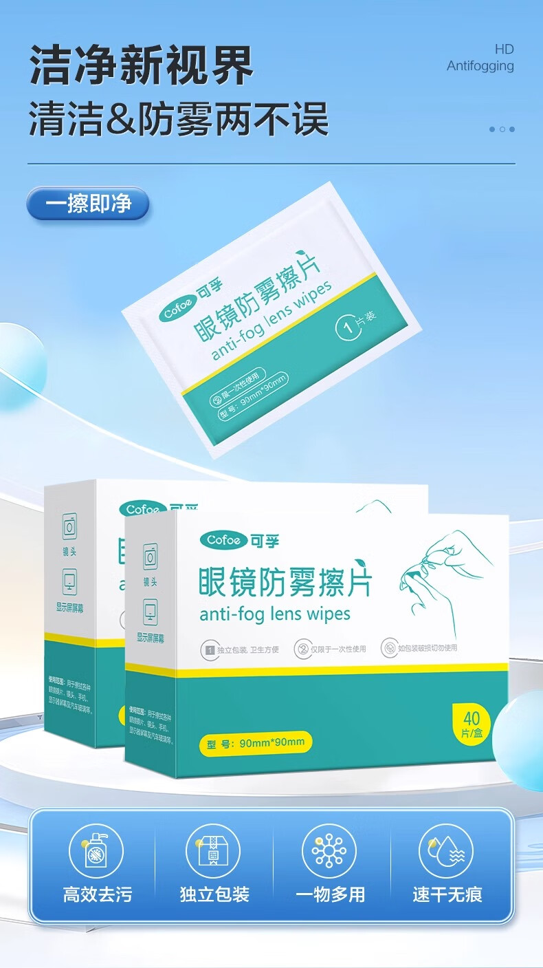 可孚牌眼镜防雾擦片 100片/盒+40片/盒*2盒 白色