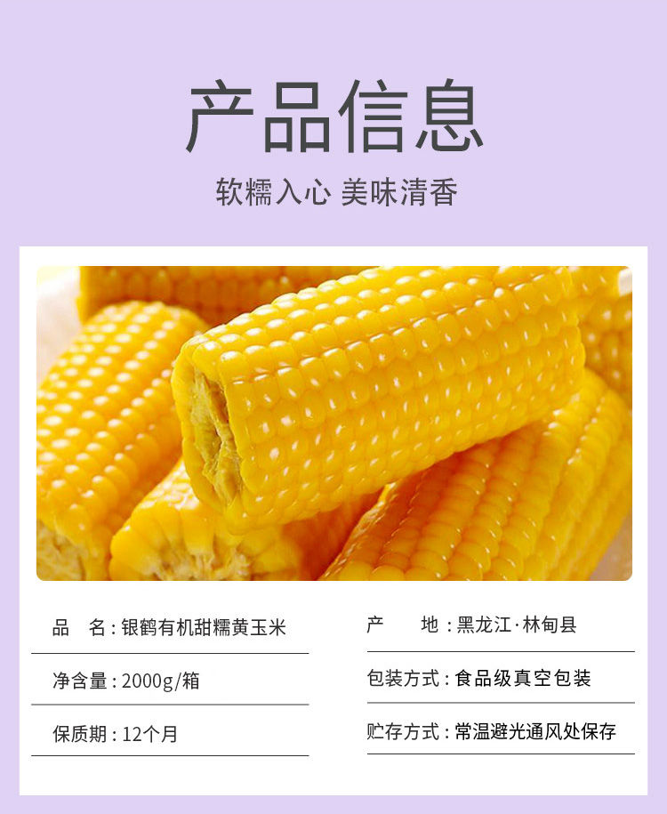 银鹤东北寒地有机黄糯玉米220g*8(单位:根)