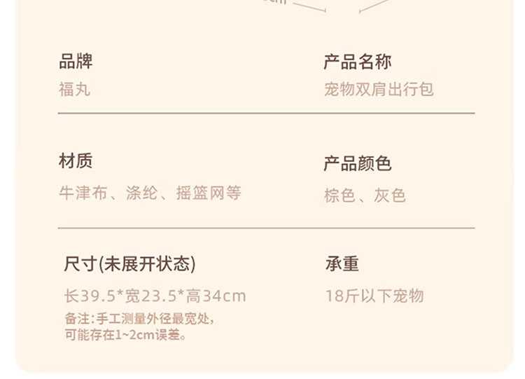 福丸宠物猫包便携外出可拓展透气四季通用抱猫神器宠物外出双肩包(单位:个) 灰色