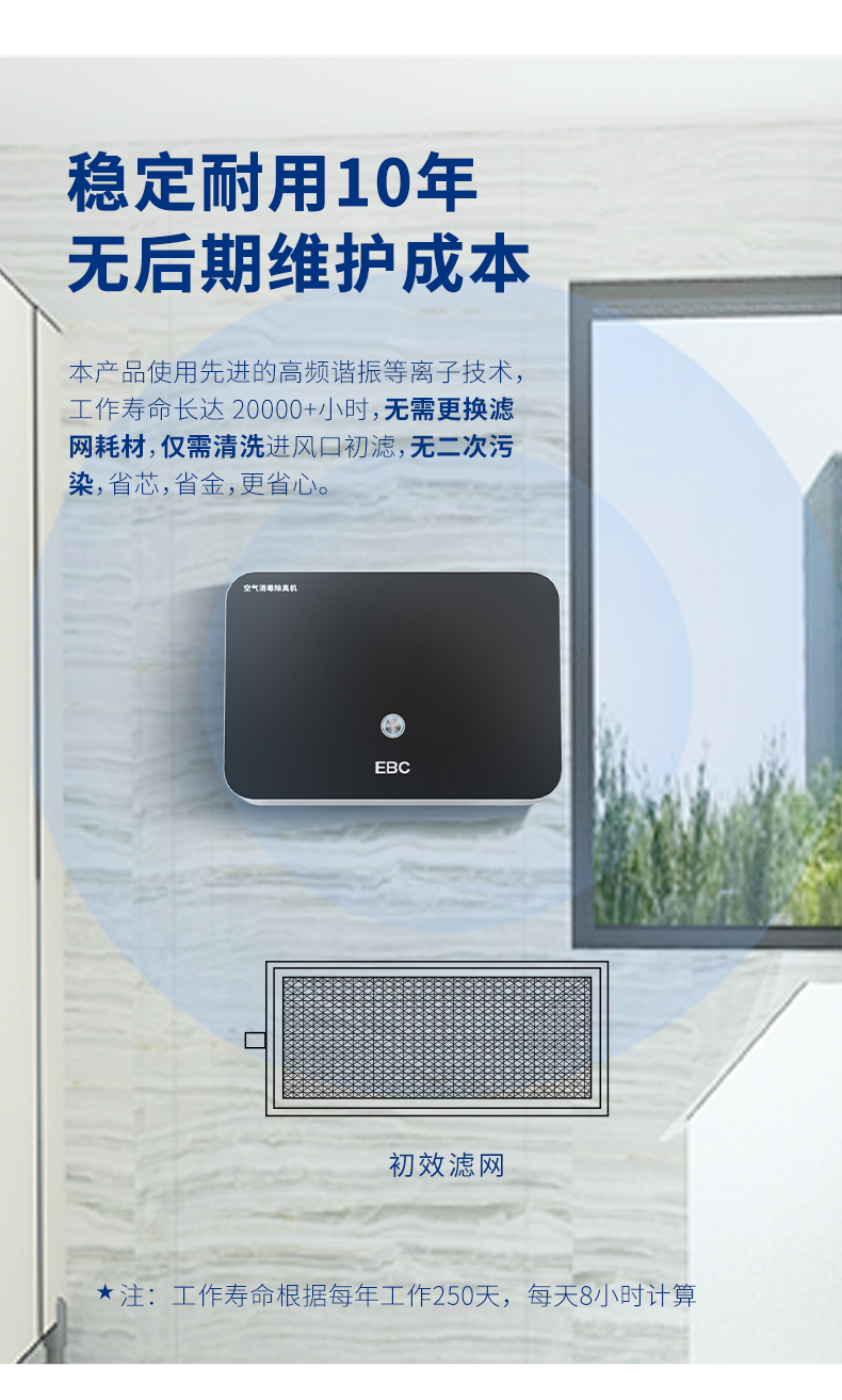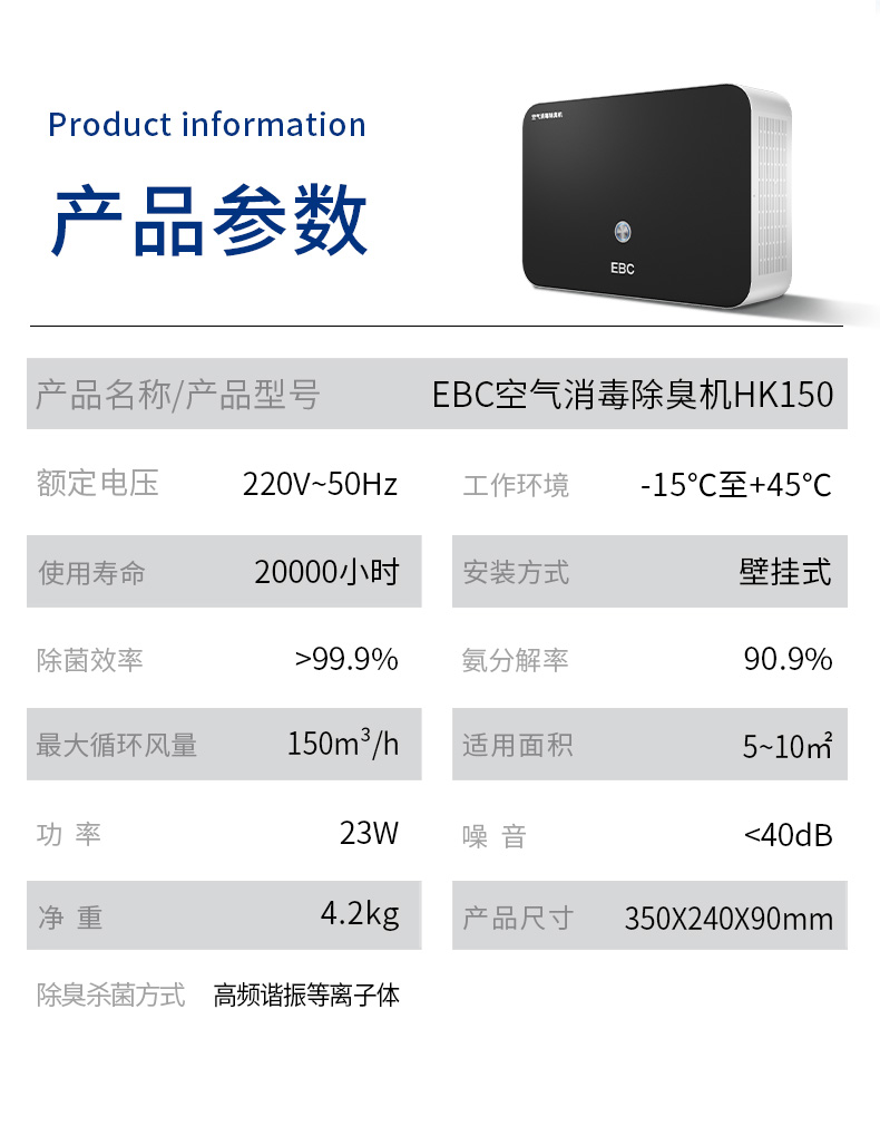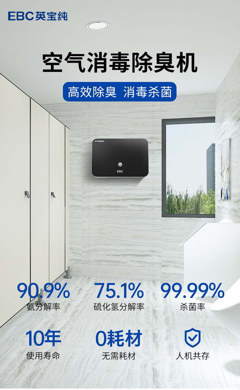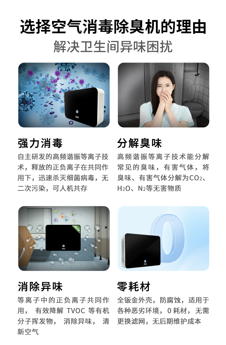 英宝纯(EBC)卫生间洗手间除臭器等离子空气消毒机除异味净化器 HK150N 台(单位:台) 黑色