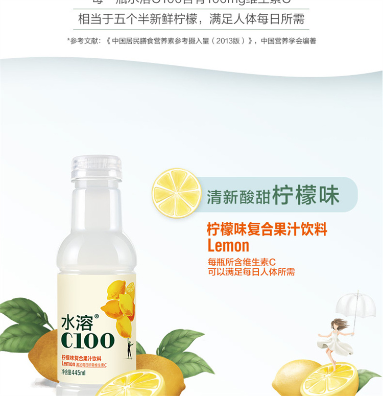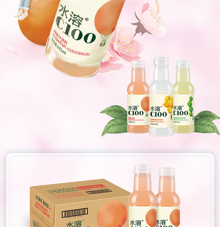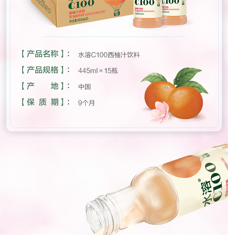 农夫山泉 水溶C100西柚汁饮料445ml*15入纸箱装 粉色