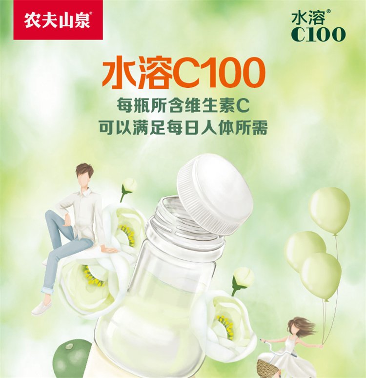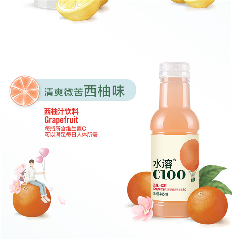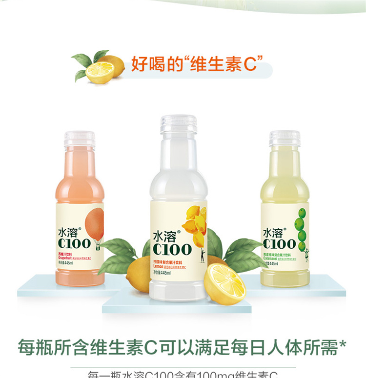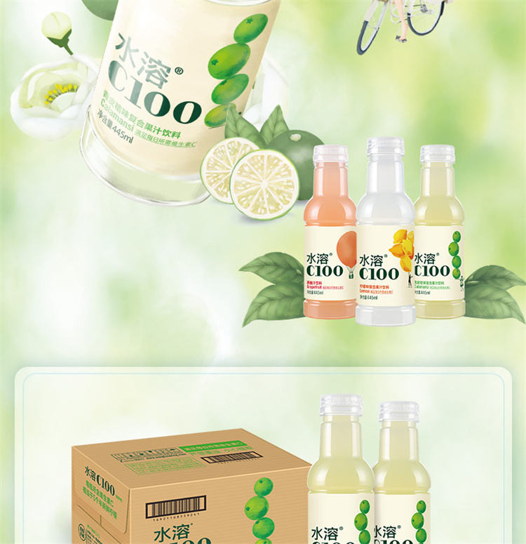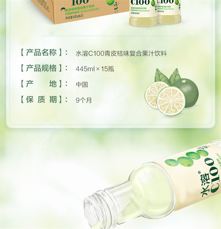 农夫山泉 水溶C100青皮桔复合果汁饮料445ml*15入纸箱装 绿色