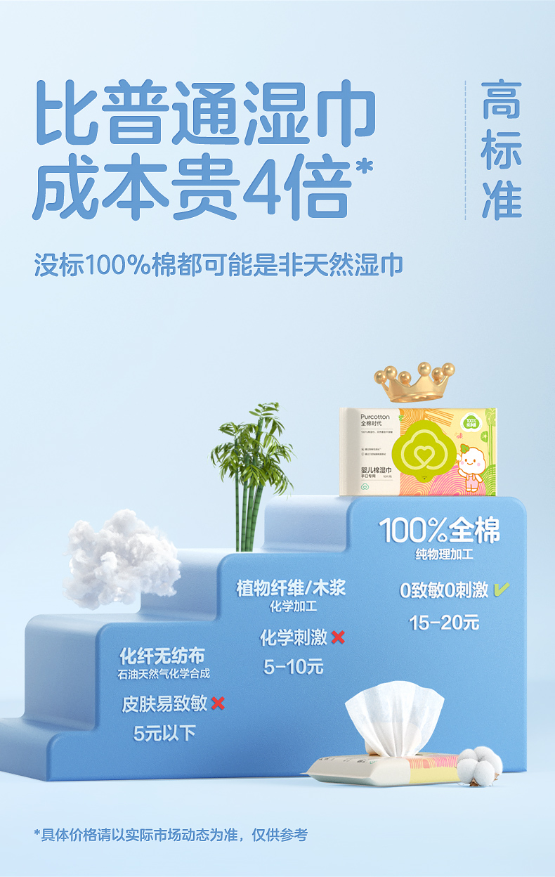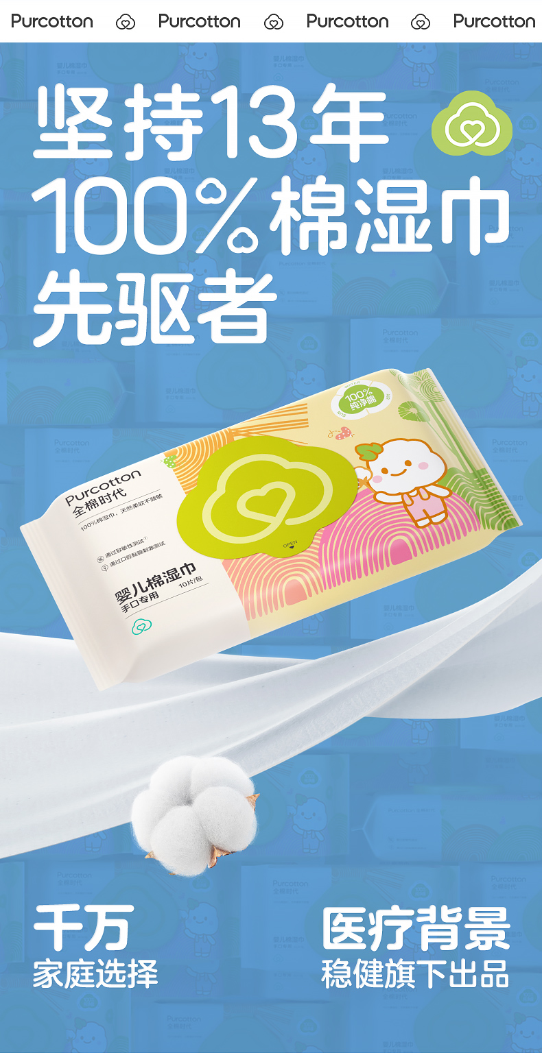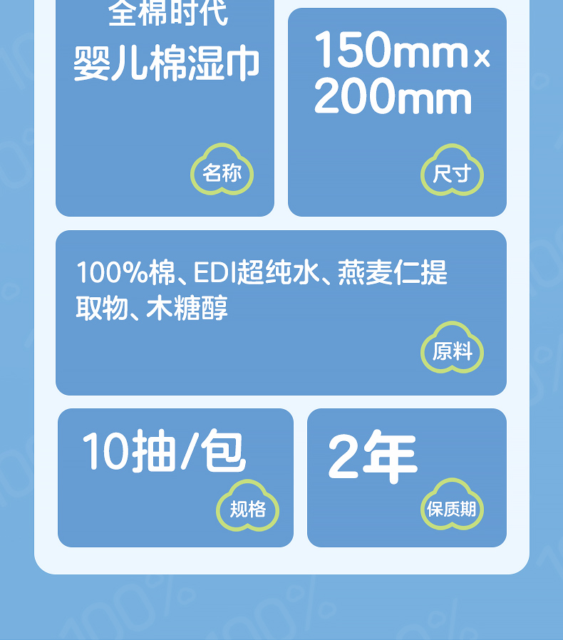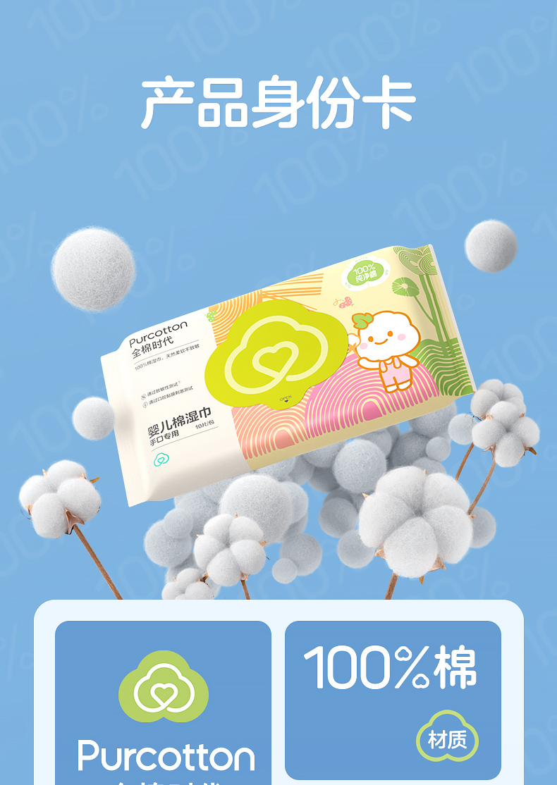 全棉时代棉湿巾便携装150*200mm 10片/包 10包/袋 白色