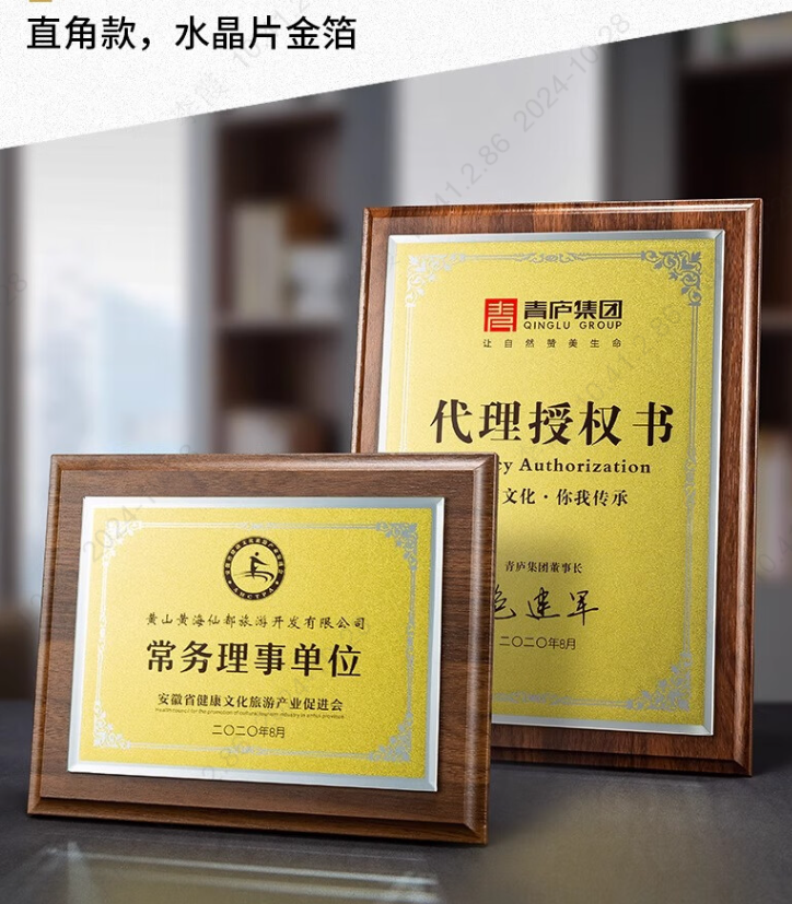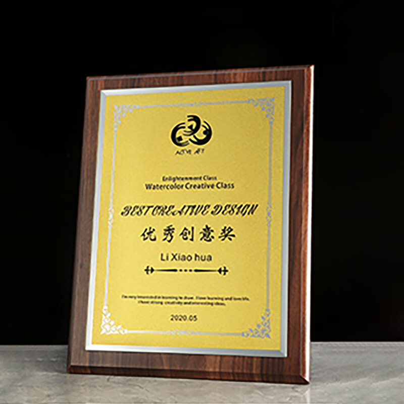 东方好礼奖牌金箔彩印仿实木奖牌 24*31cm 单位:个 金色