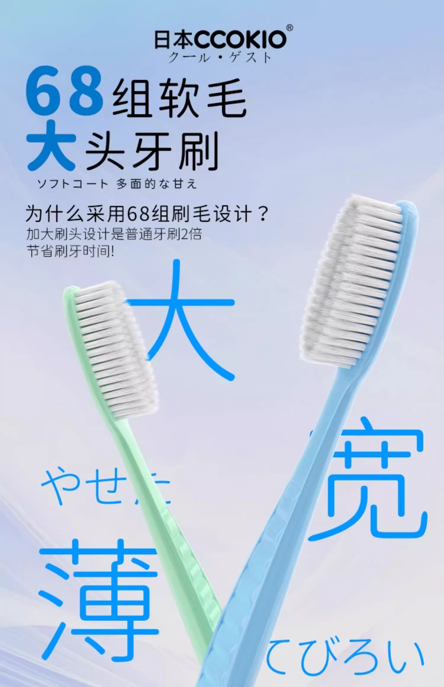 酷优客(CCOKIO) 抑菌软毛 4支装/组 68孔大刷头牙刷 混色(单位:组)