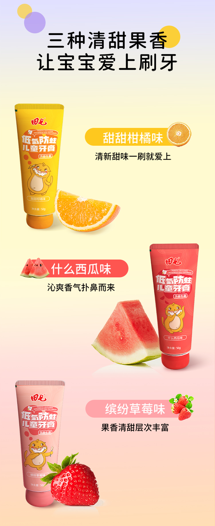 田七益生菌低氟防蛀儿童牙膏(缤纷草莓味50g)单位:支 粉色