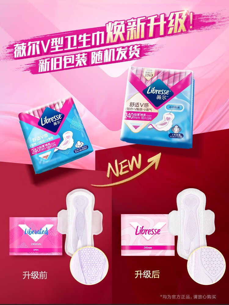 薇尔舒适V感240日用10片极薄棉柔卫生巾(单位:包) 佳人粉