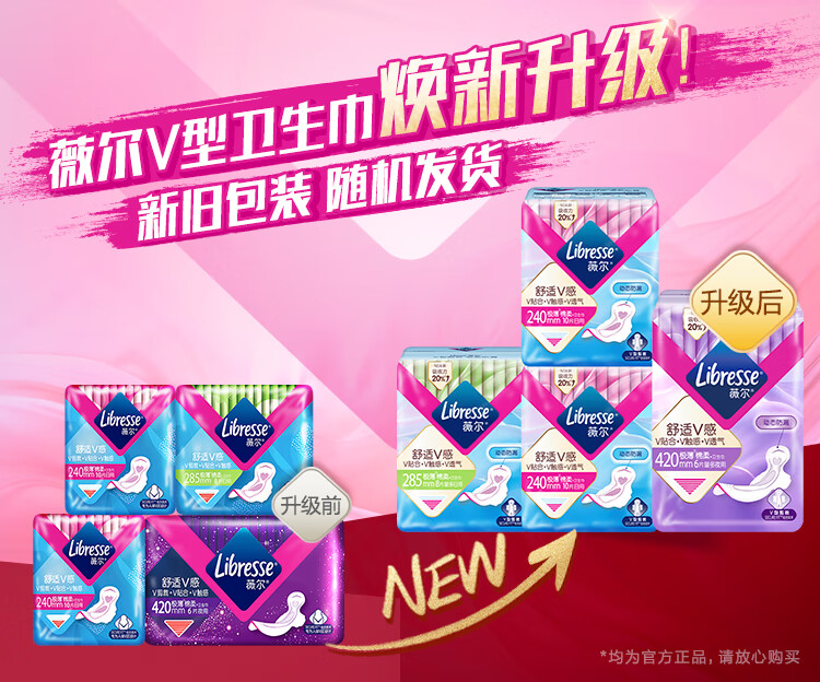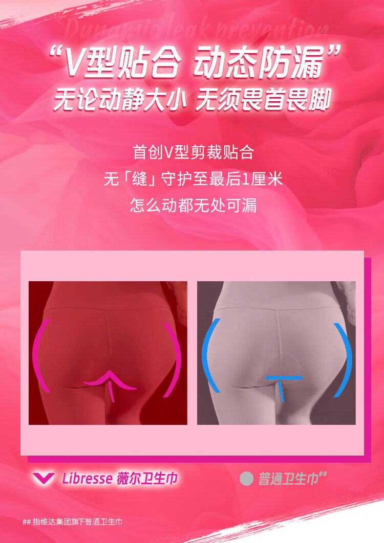 薇尔卫生巾日夜组合 姨妈巾套装 V感系列4包34片 动态贴合极薄棉柔(单位:包) 佳人粉