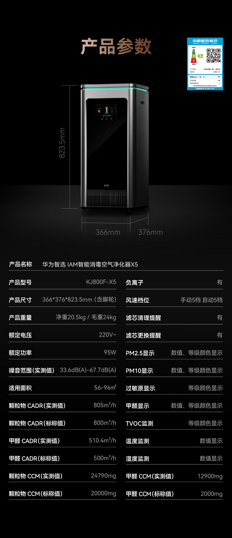 华为智选 IAM智能消毒空气净化器 X5 单位:台 铁灰色