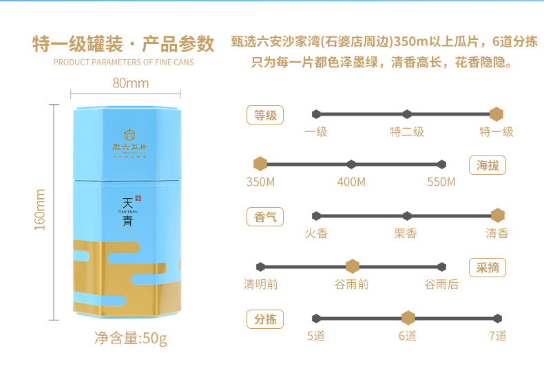 徽六 六安瓜片 50g 特一级天青 天蓝色(单位:罐)